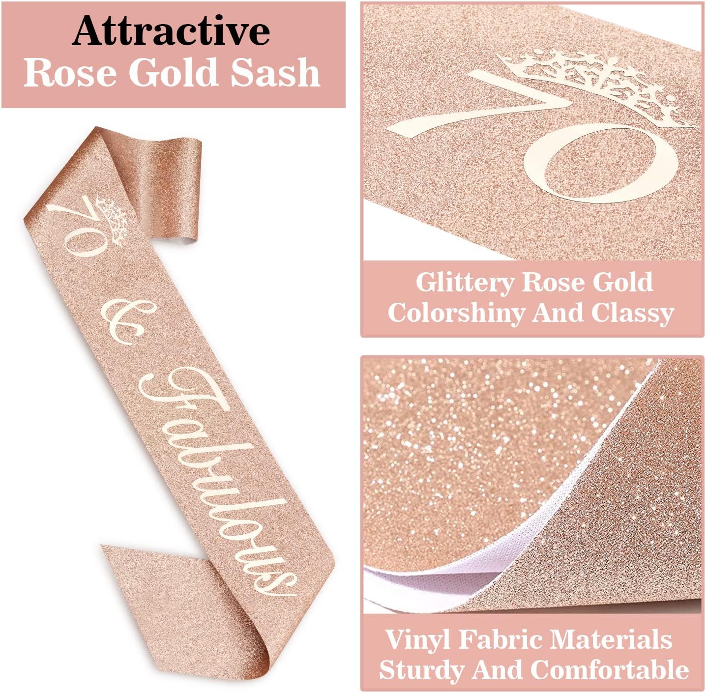 - Quality Birthday Sash for Women: Our 70th birthday sash is made of high quality glitter satin with foil lettering. The sash is in 63 inch length and comes with a gold charm pin that you can easily adjust the length you need.