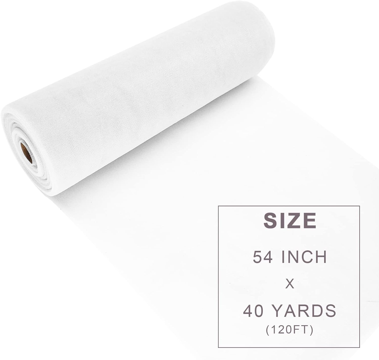 White Tulle Fabric Roll Spool Bolt (54 Inch by 40 Yards) Large Tulle Wedding Party Decoration, Tutu Skirt, Table Runner, Gift Wrapping, Bridal Shower, Soft & Drape (White)