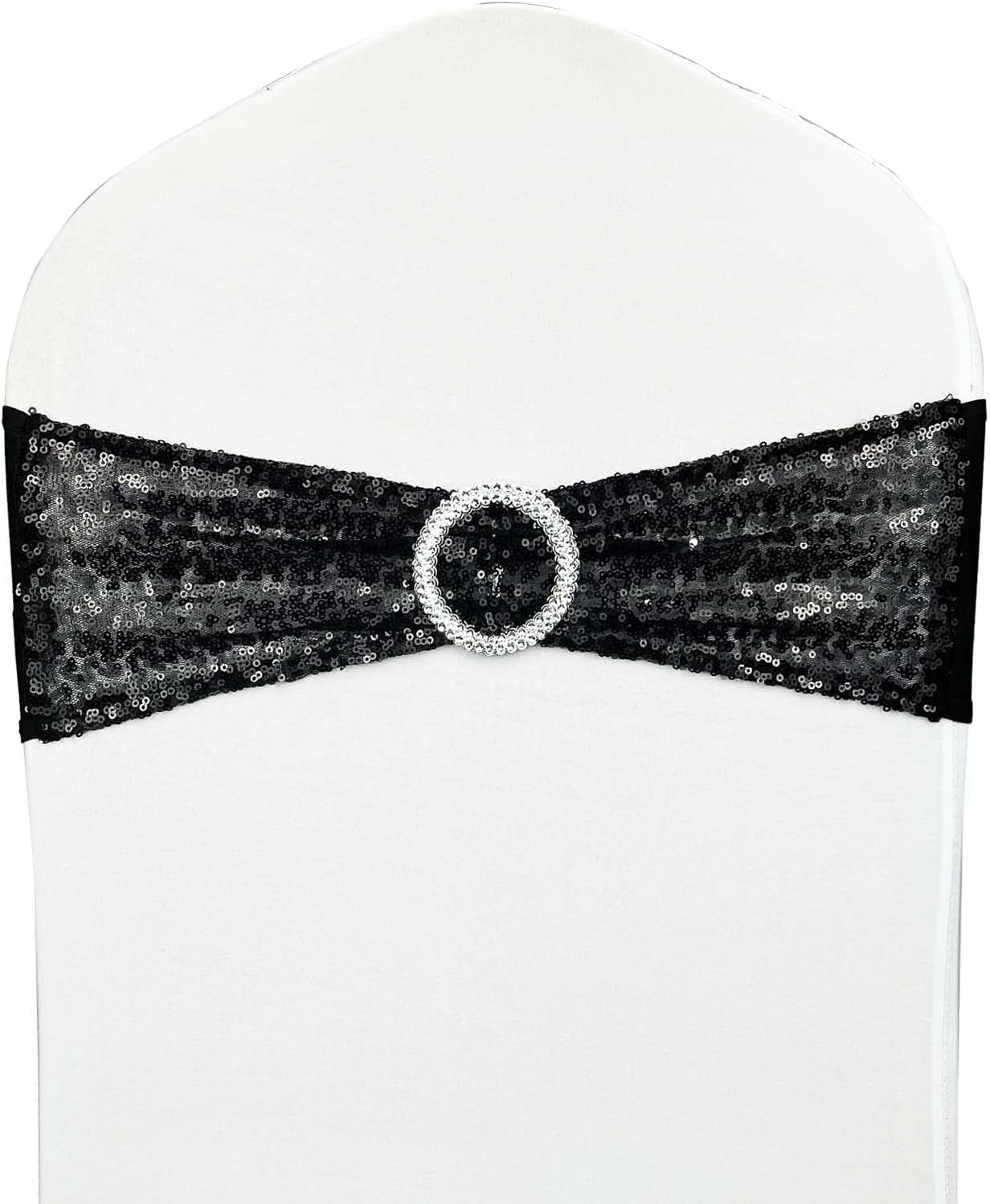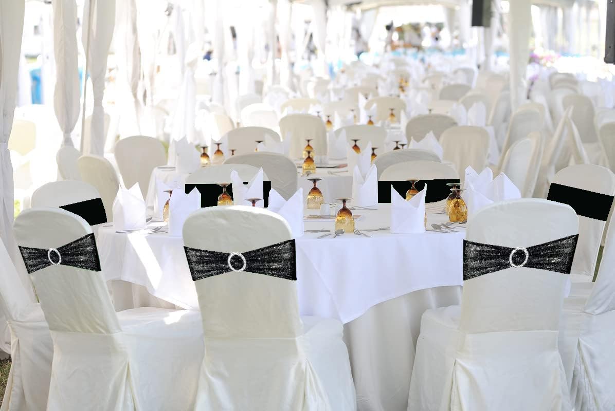 100 Pcs Chair Sashes Sequin Stretch Chair Bands Spandex Polyester Bows for Party Hotel Wedding Banquets Decoration - Black