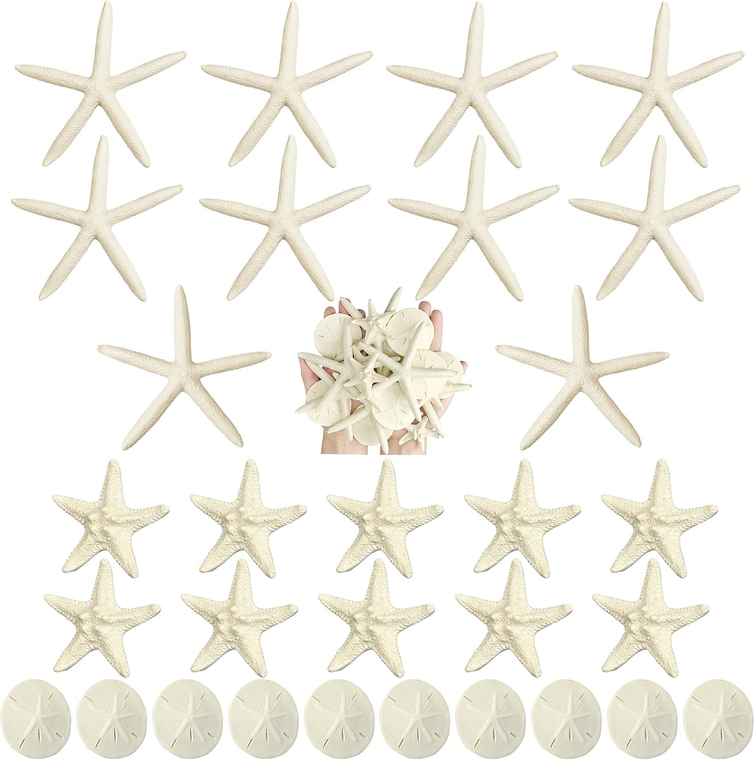 - Quality Material: beach decor starfishes and white sand dollars are made of resin material, purely handmade, they are clean without bad odor, the white color and stable shape can last for a long time
