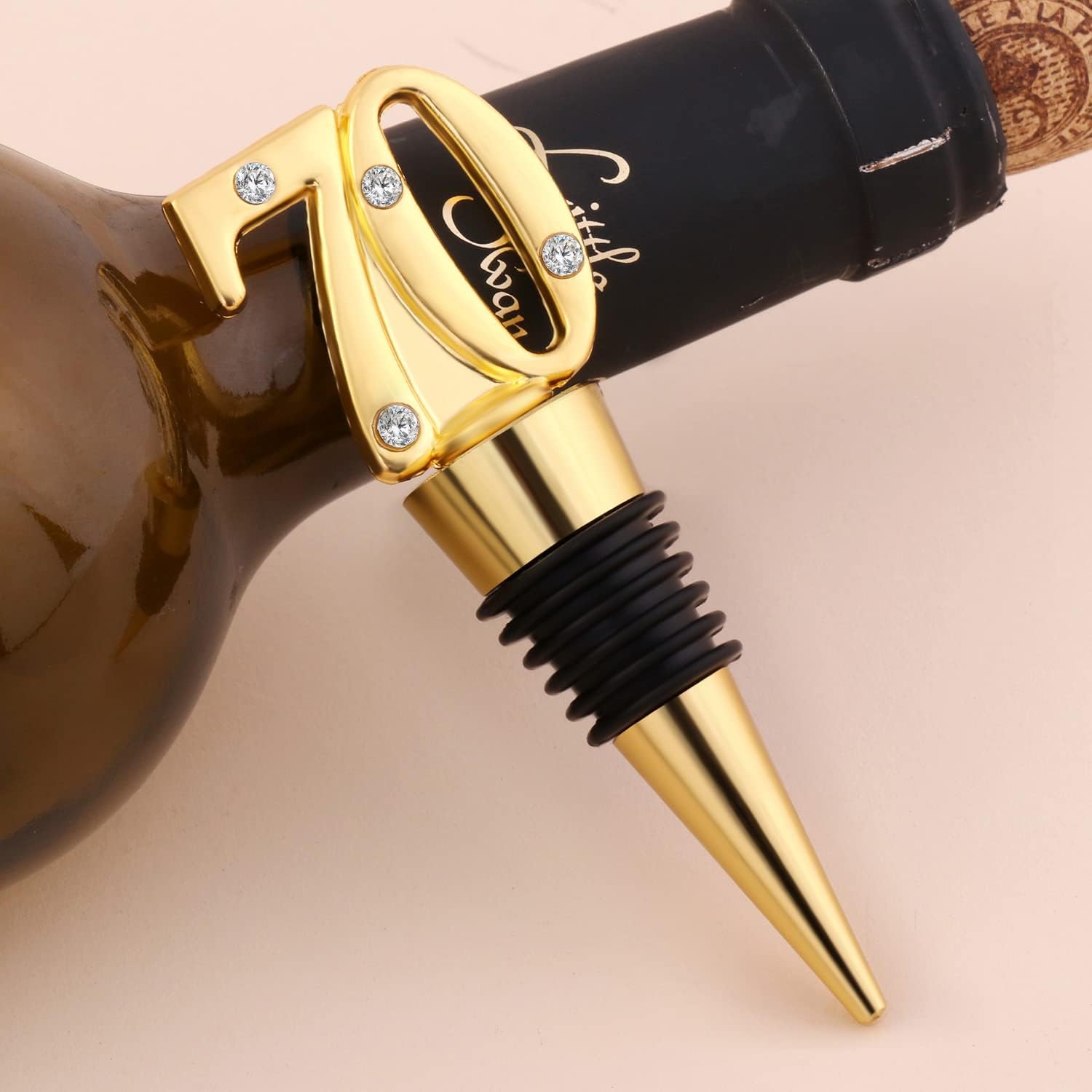 12 Pack 70 Wine Stopper Party Favors Anniversary Party Gifts Black and Gold Birthday Party Gifts Souvenirs Decorations for Guests (black 70, 12)