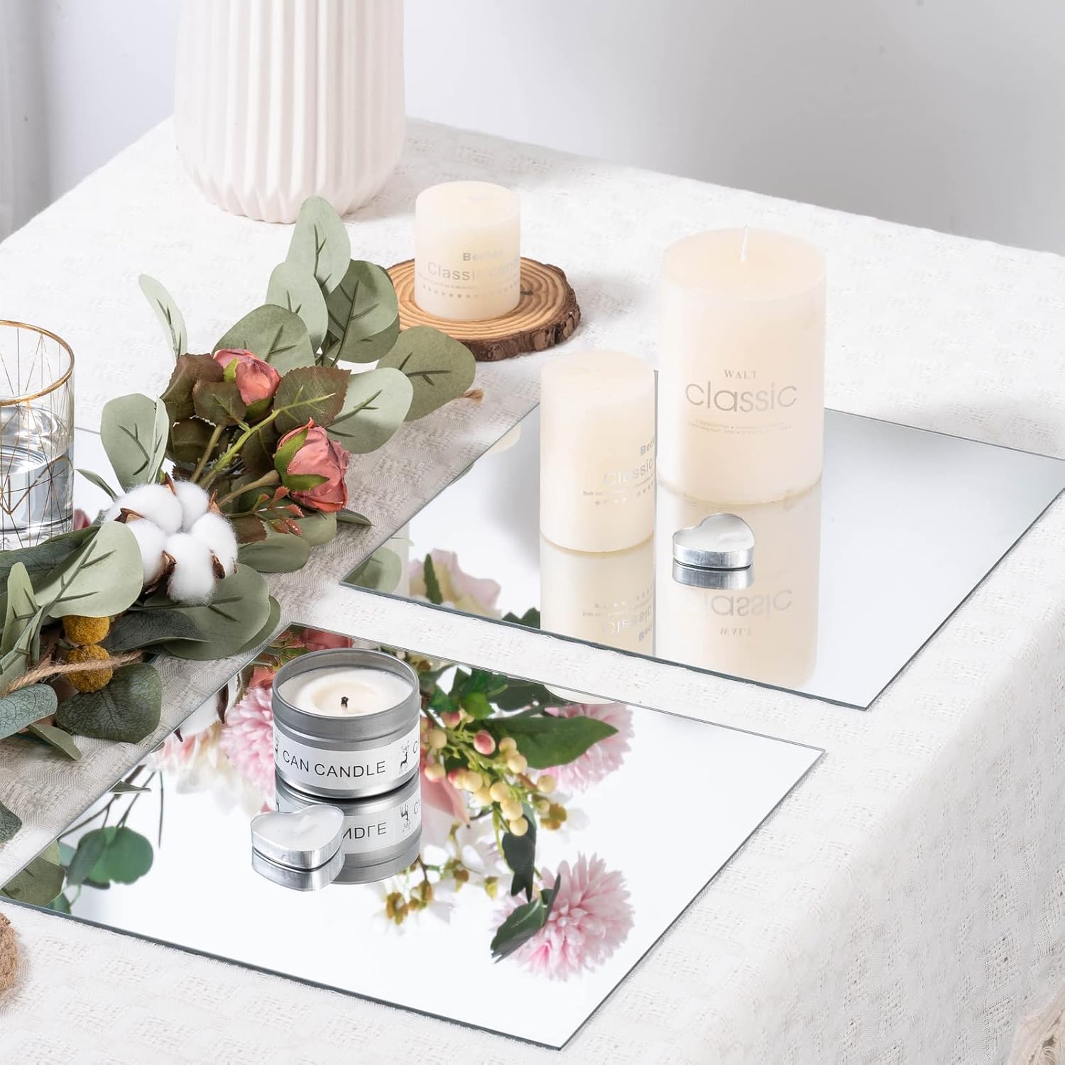 - ✨【HIGH QUALITY MATERIAL】12 pack square mirror trays have cushioned feet on the back, stable to display candles, flowers on weddings, and parties, with no scratch to the table surface. Feet can be removed so they can be hung as Square wall decor mirrors.