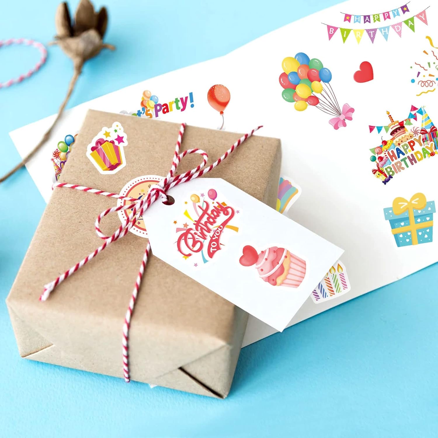 - WONDERFUL BIRTHDAY STICKERS -- You can find the stickers of birthday cake, birthday candle, colorful balloons, “happy birthday”, stars and gift boxes. A great and beautiful stickers to decorate the invitation card. Some of them could be used as envelope sealing and gift wrap.