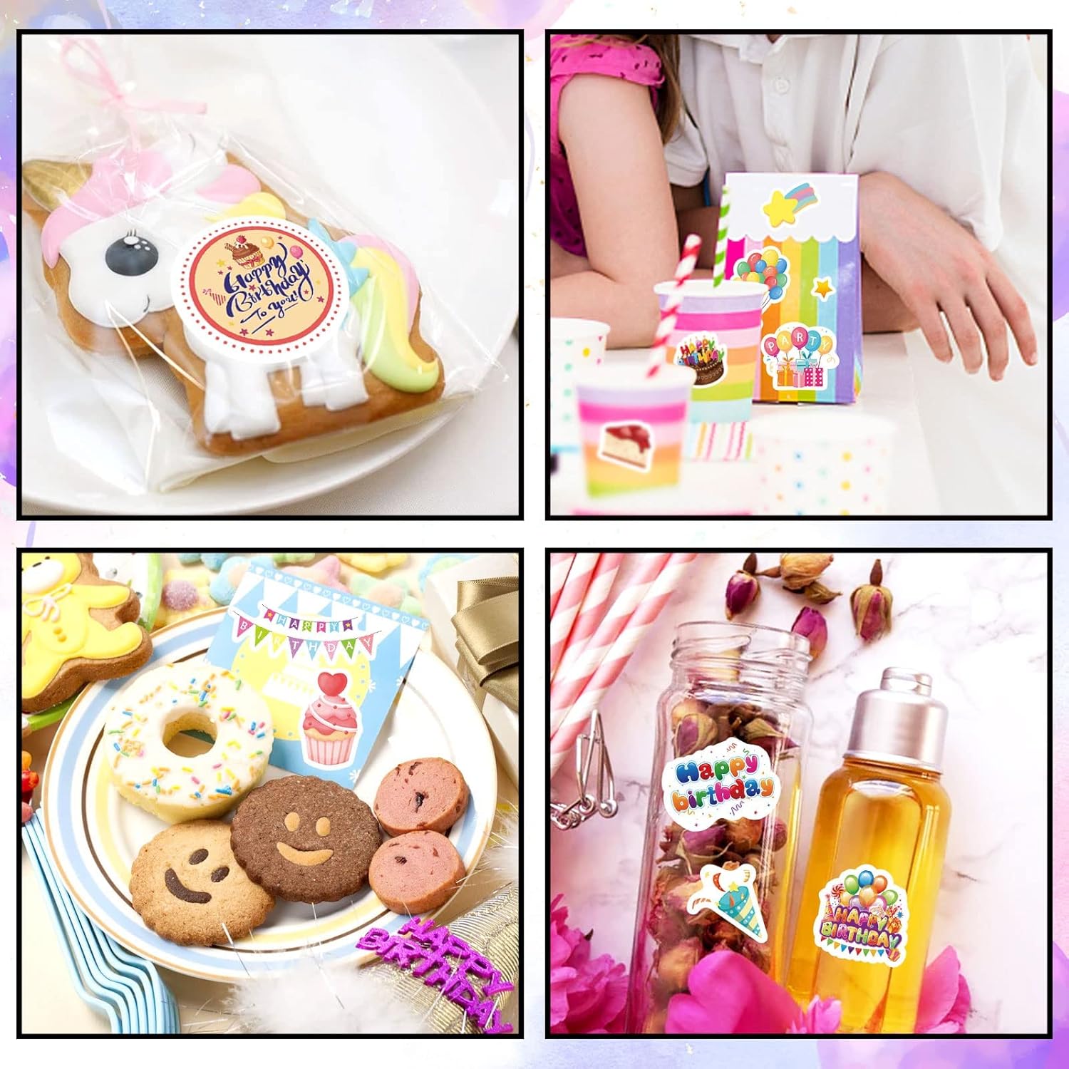 - WIDE APPLICATIONS -- Those happy birthday adhesive stickers are great for envelopes, invitations, party favors, party goodie bag, gift bags, gift wrap, gift boxes, greeting cards, scrapbooks, decorative and so on. Those cute HAPPY BIRTHDAY adhesive stickers decorations will add a nice touch the birthday party.