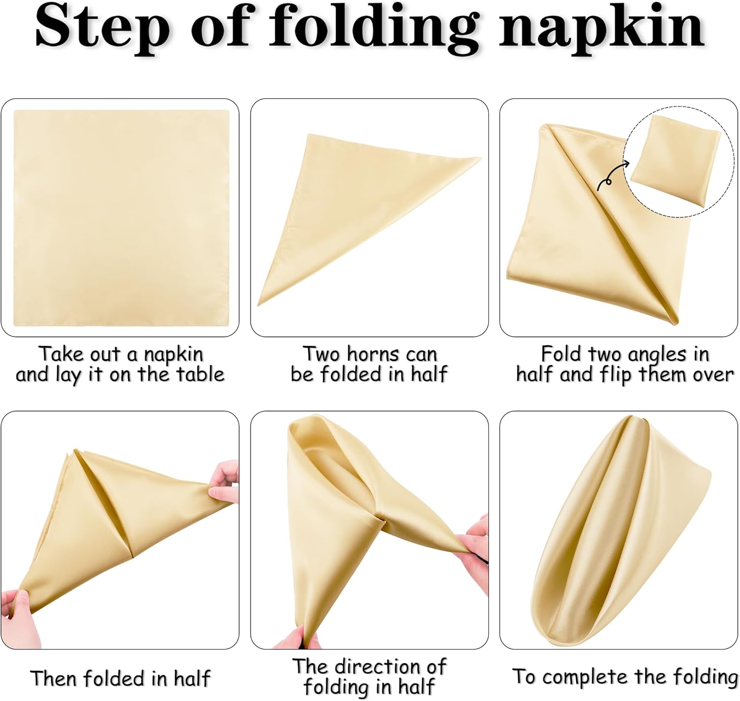 - Package content: you will receive 12 pieces of satin napkins in champagne, each is 17 x 17 inches/43 x 43 cm in size, the quantity is very large, enough for daily use and replacement