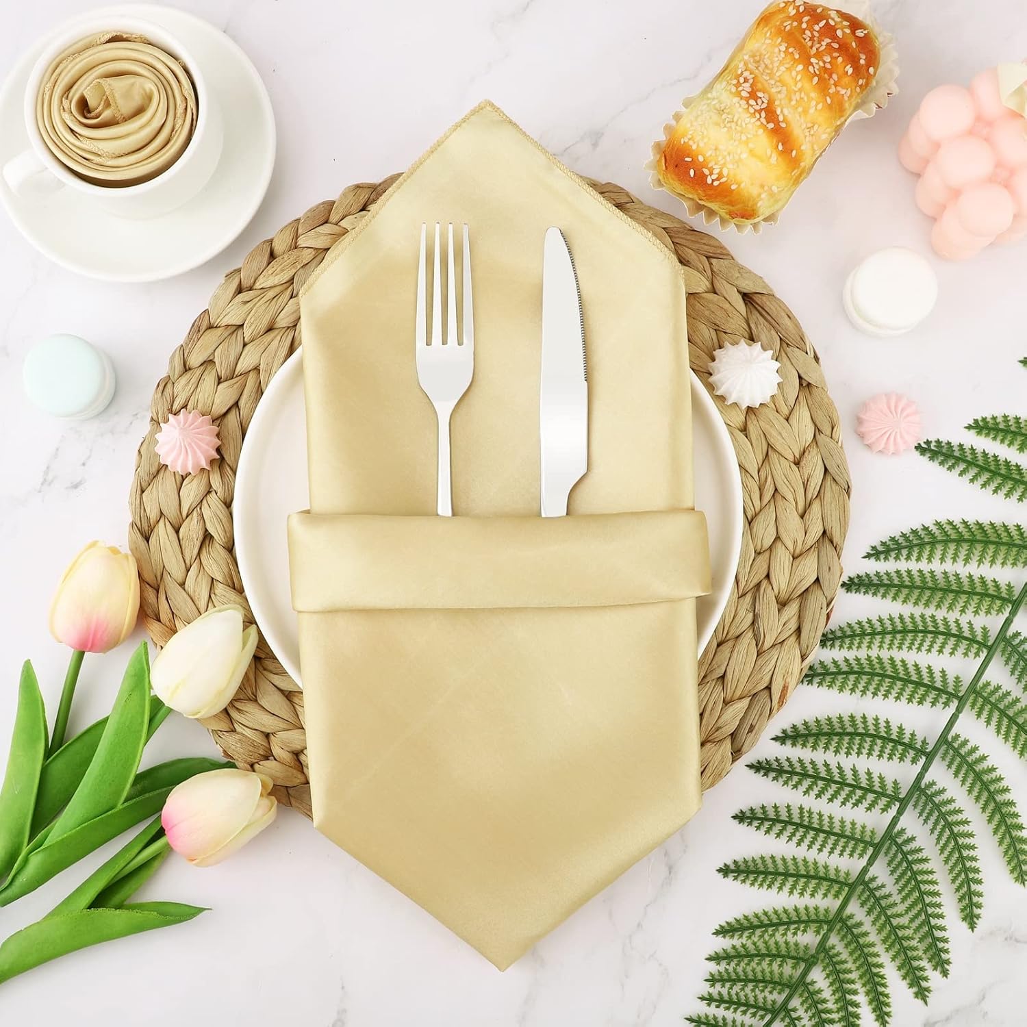 Aneco 12 Pieces Satin Napkin Square 20 x 20 Inches Dinner Napkins Weddings Party Napkin Soft Table Napkins for Romantic Weddings Party Dinner Decoration (Champagne)