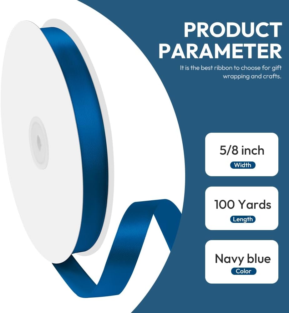 - 【Size】High grade single face navy blue ribbon has a 5/8 inch width and comes in a lengthy 100 yards roll, providing ample material for all your creative projects. The built-in spool adds convenience, making it easy to handle and store.