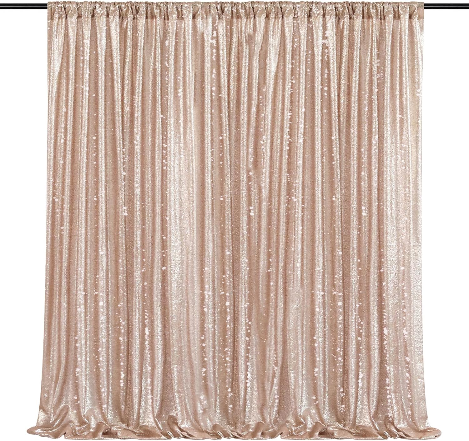 - Champagne Blush Backdrop Curtain: The total area covered by sequins backdrop is 7FT long x 7FT Width.With a 4-inch rod pocket on the top for easy hanging.