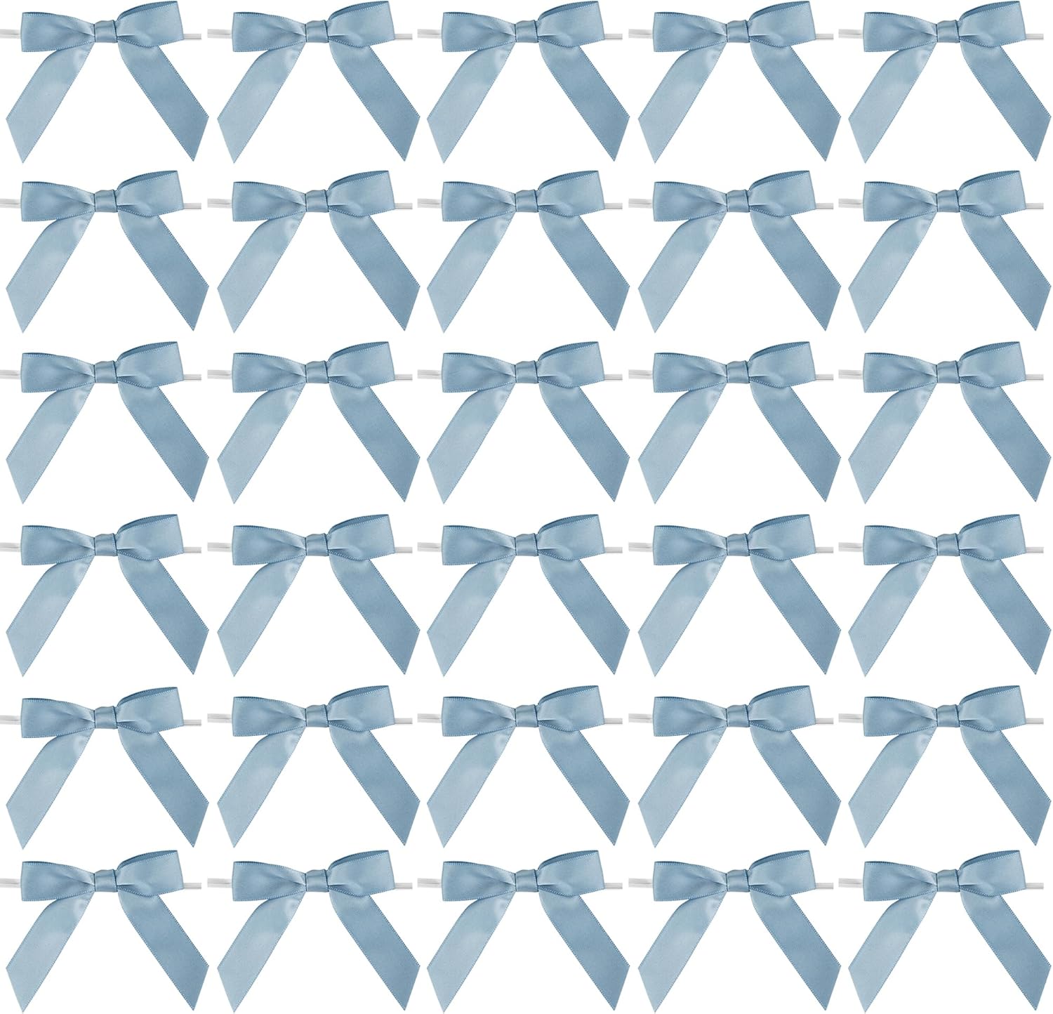 AIMUDI Dusty Blue Bows for Gift Wrapping Premade Satin Bows for Wedding Decor Pre Tied Twist Tie Bows Small Bows for Crafts Treat Bags Cake Pop Party Favors - 50 Counts