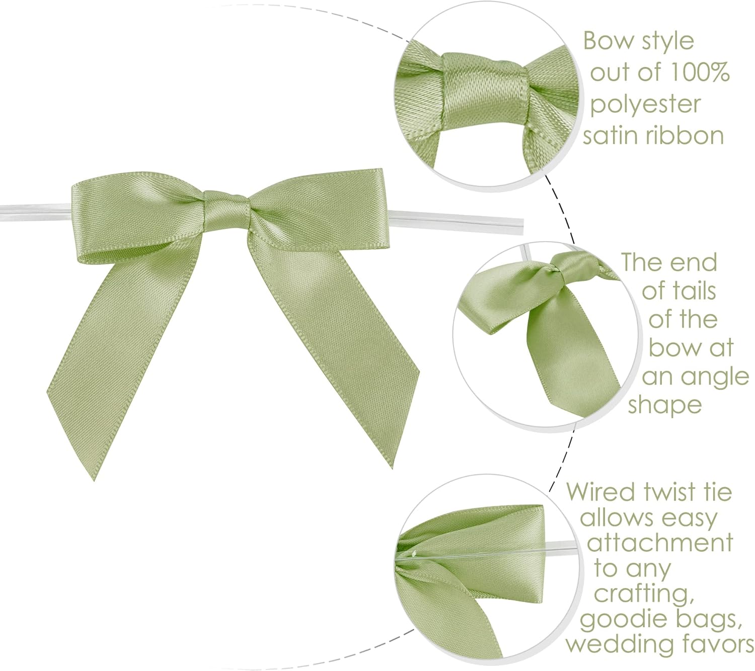 - [ Package Content ] You will receive 50 pieces sage green satin bows with twist ties. Saving time from having to make the bows yourself.