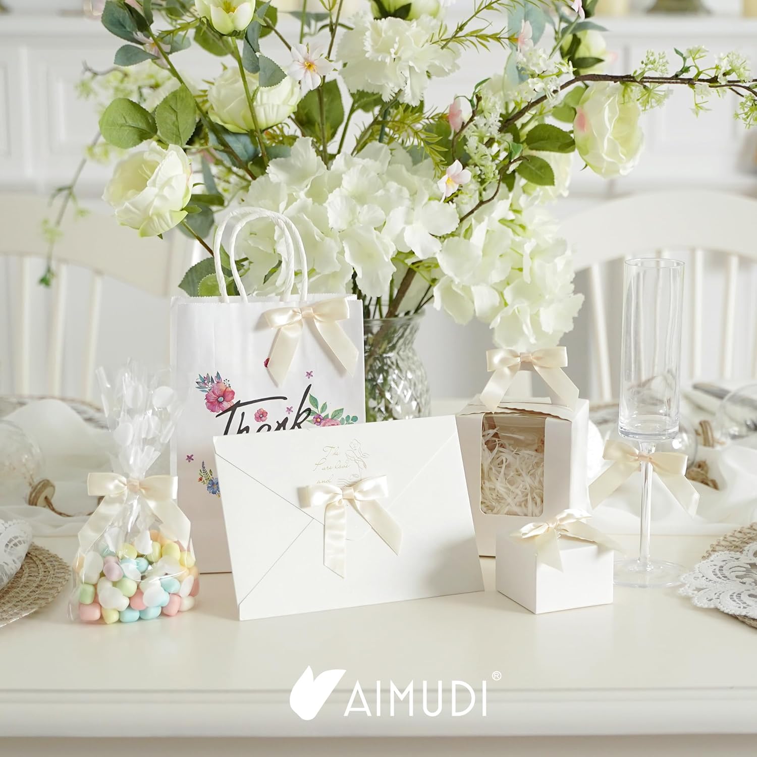 AIMUDI Ivory Bows 2.5" Pretied Satin Ribbon Bows Premade Twist Tie Bow for Treat Bags Cake Pop Bow for Wedding Favors Mini Bows for Gift Wrapping Baby Shower Decorations - 50 Counts