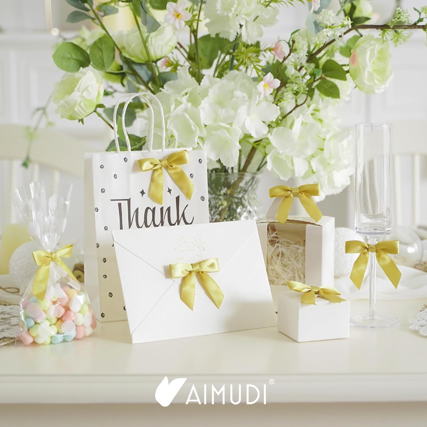 - [ Package Content ] You will receive 50 pieces gold satin bows with twist ties. Saving time from having to make the bows yourself.