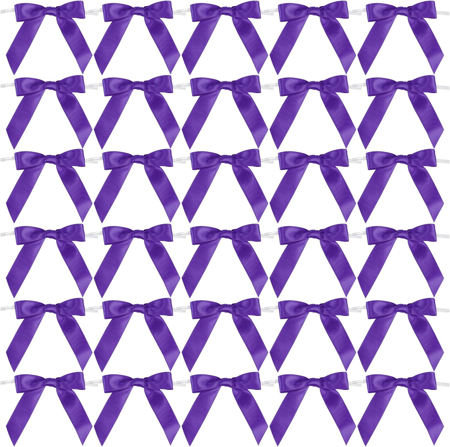 - [ Package Content ] You will receive 50 pieces purple satin bows with twist ties. Saving time from having to make the bows yourself.