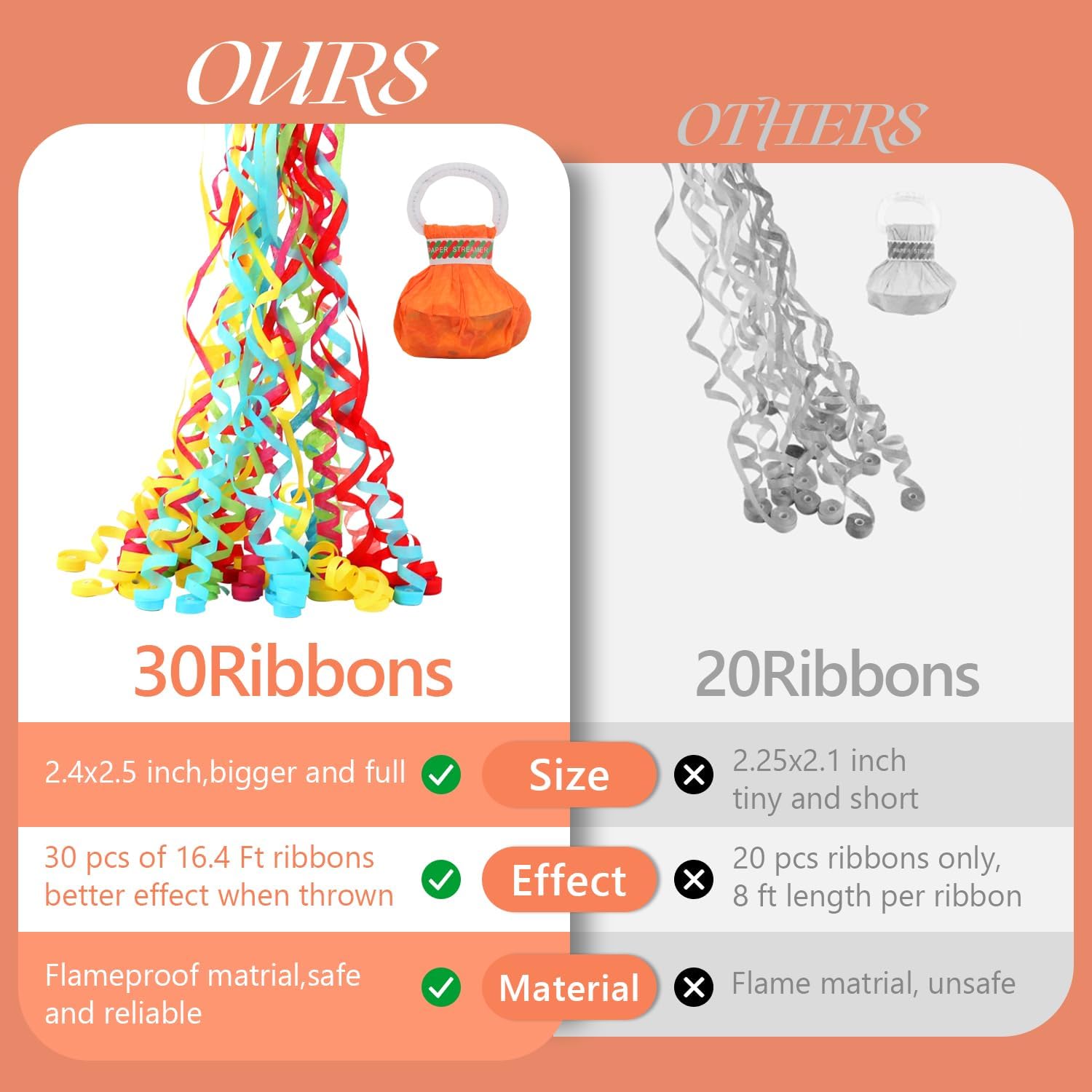 - Size & Quantity : There are 30 packs colorful streamers in total, and each crackers poppers has 30pcs streamer inside, and the length of each streamer is approx 6 meters, invite your friends or your kids to play together