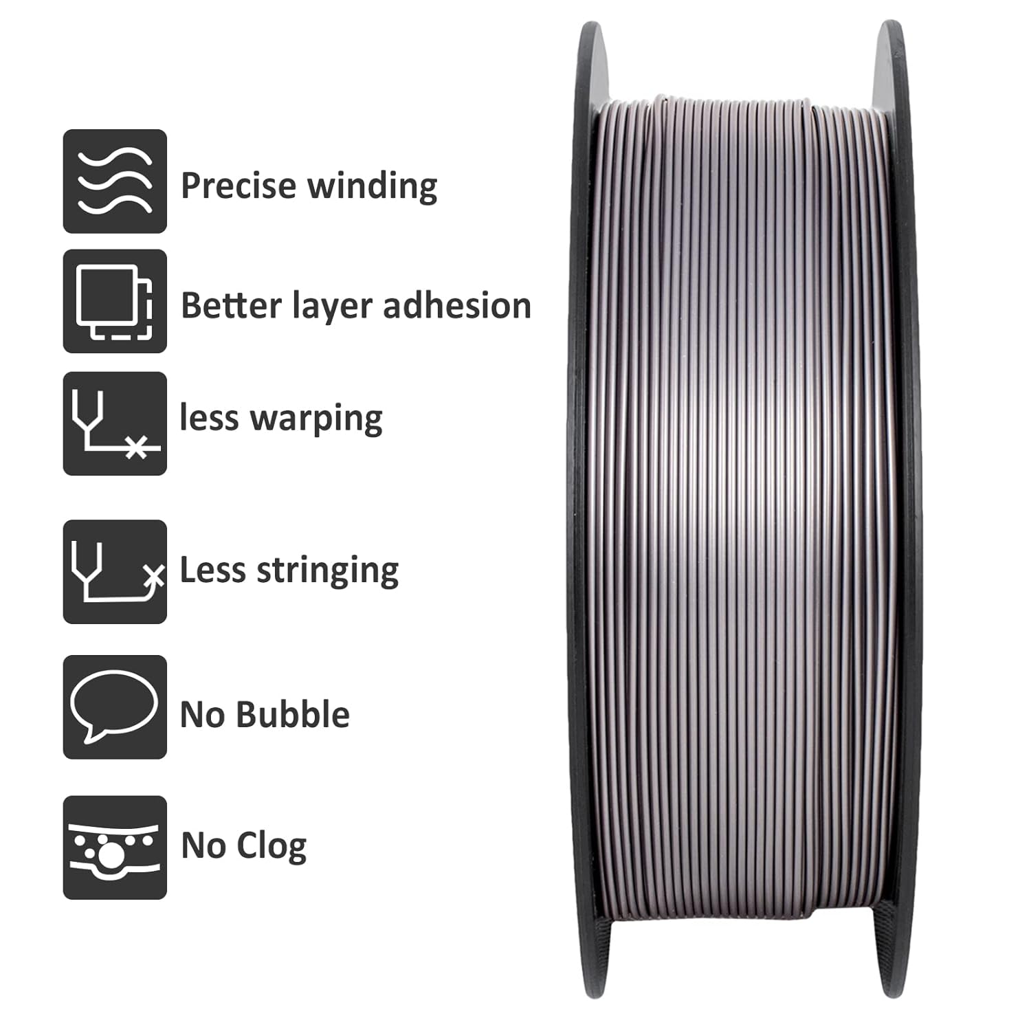Geeetech Silver Filament, PLA Filament 1.75mm 1kg Spool (2.2lbs), Dimensional Accuracy +/- 0.02 mm, 3D Printing Filament Fit Most FDM Printer, New Silver