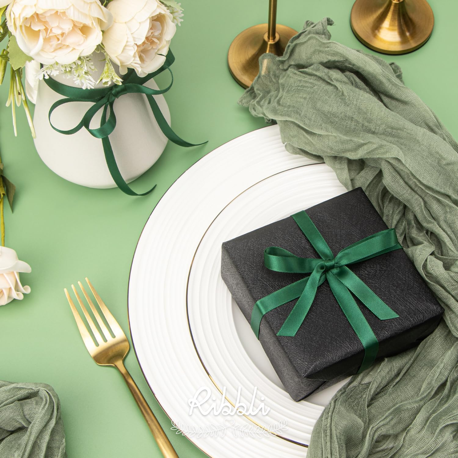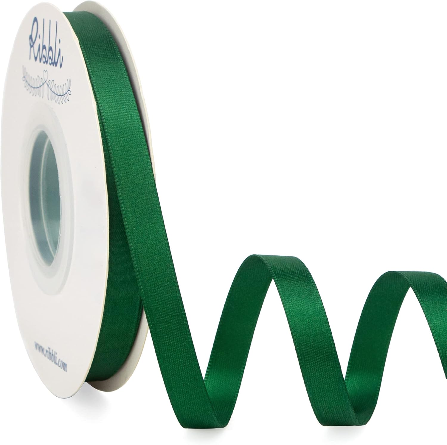 Ribbli Double Faced Forest Green Satin Ribbon,3/8” x Continuous 25 Yards,Use for Bows Bouquet,Gift Wrapping,Floral Arrangement