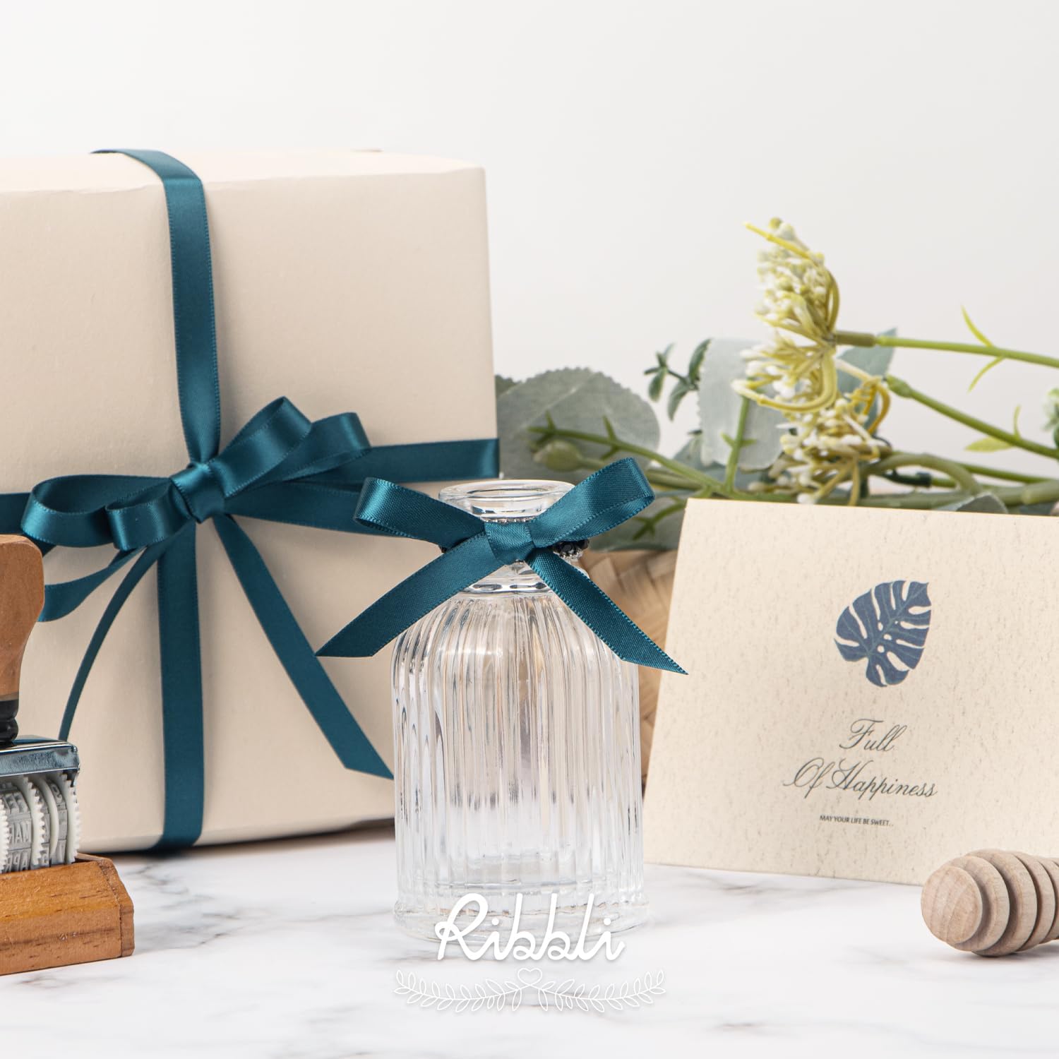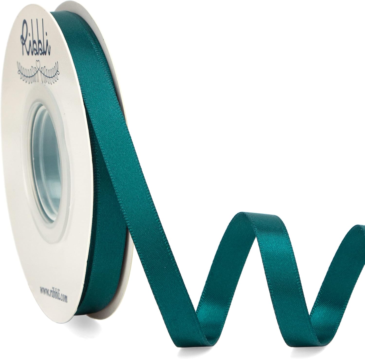Ribbli Double Faced Teal Satin Ribbon,3/8” x Continuous 25 Yards,Use for Bows Bouquet,Gift Wrapping,Floral Arrangement