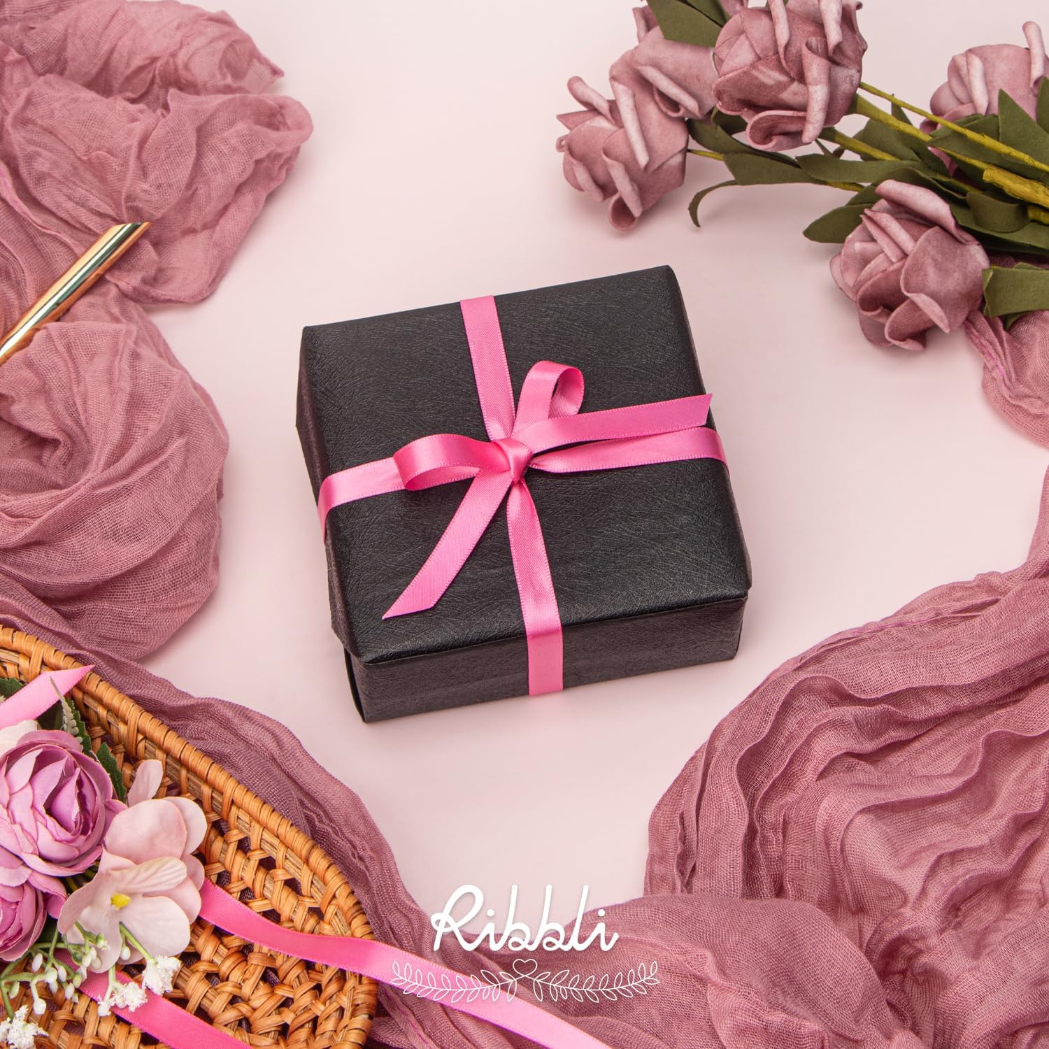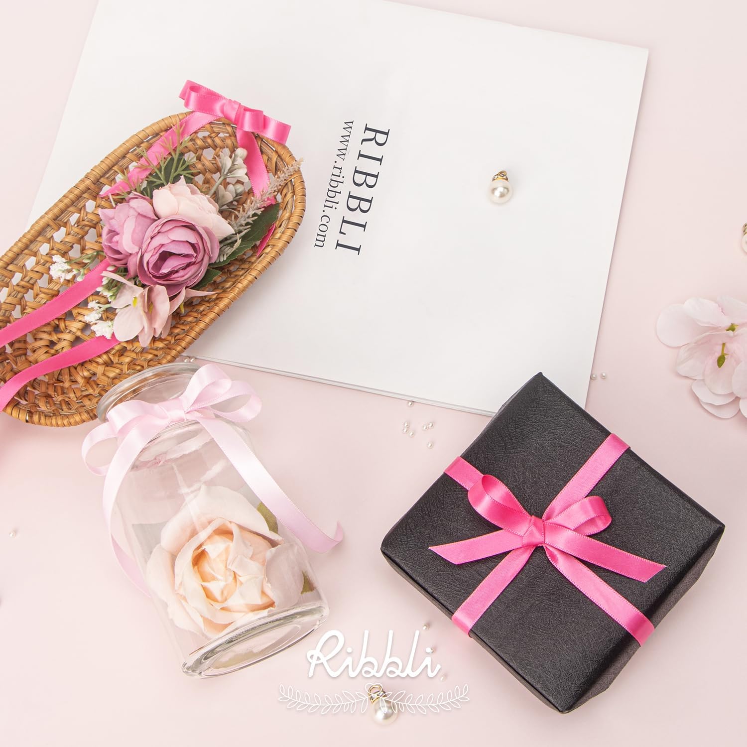 Ribbli Double Faced Hot Pink Satin Ribbon,3/8” x Continuous 25 Yards,Use for Bows Bouquet,Gift Wrapping,Floral Arrangement