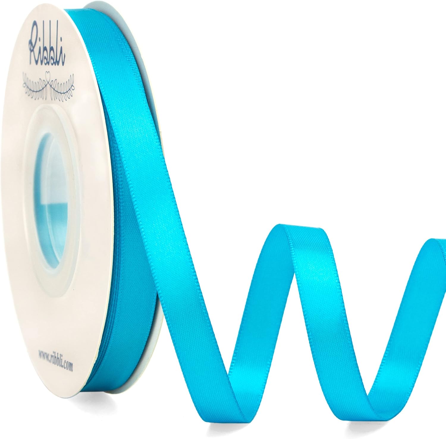 Ribbli Double Faced Turquoise Blue Satin Ribbon,3/8” x Continuous 25 Yards,Use for Bows Bouquet,Gift Wrapping,Floral Arrangement