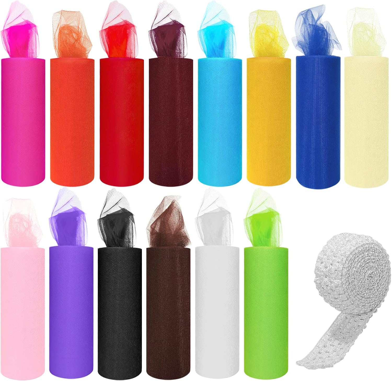 - Rainbow Colors: The tulle spools are in 14 colors: White, Light Pink, Light Blue, Ivory, Red, Yellow, Lime Green, Purple, Dark Pink, Orange, Black, Royal Blue, Burgundy, Brown. Colorful tulle can meet your different needs.