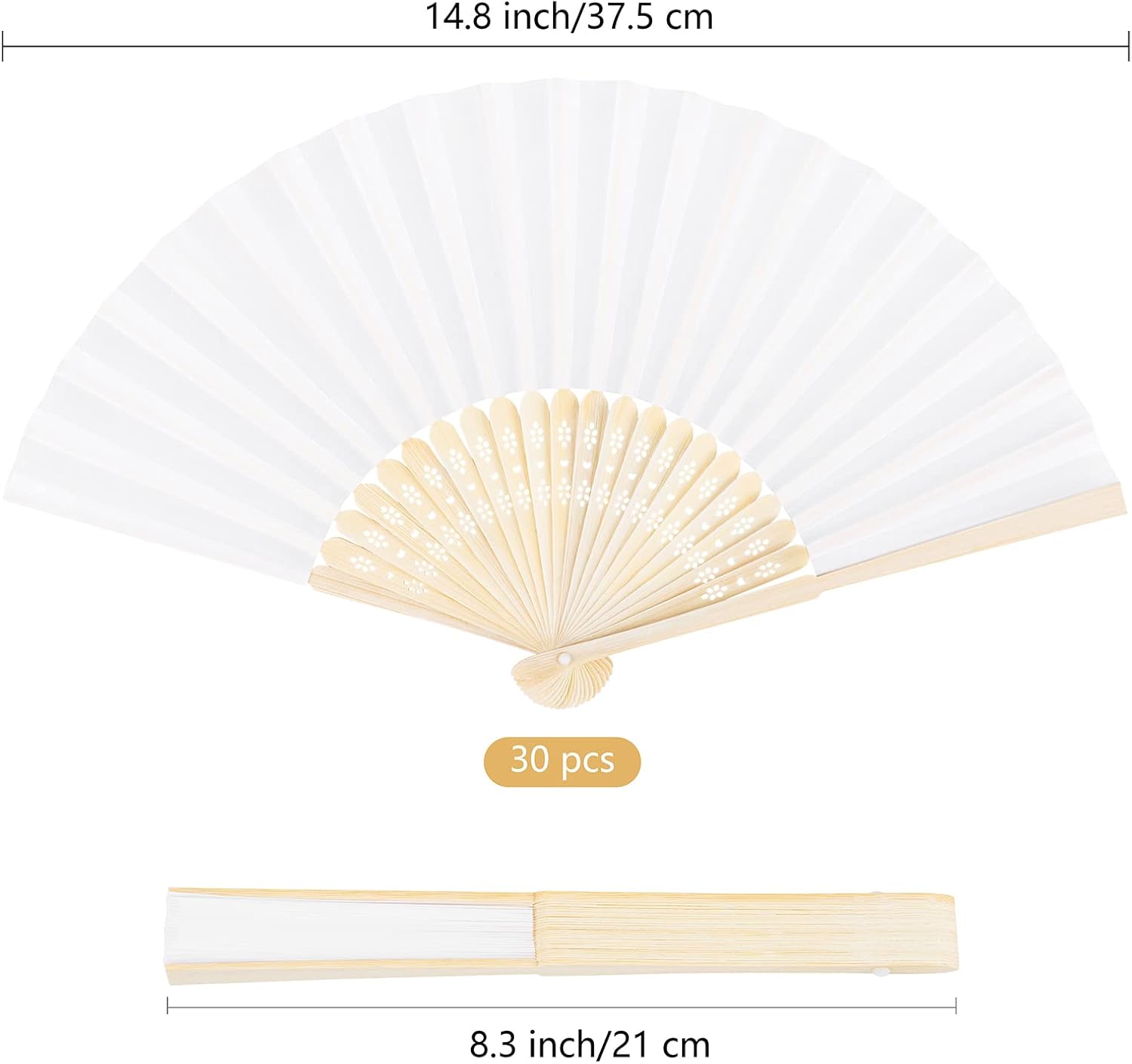 - Package contents: you will receive a total of 30 pieces of silk folding fans with bamboo frames in white; the quantity is sufficient to meet your daily use needs