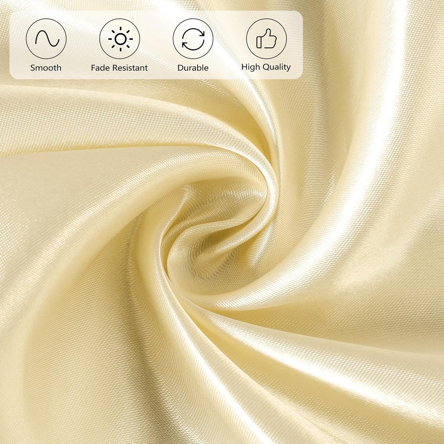 - What you will receive: the package comes with 1 piece of oversized champagne satin table overlay cover, with the simple but elegant design, the basic solid color is hardly out of date, our satin tablecloth will bring a modern twist to your table's settings and let your tables sparkle brightly, boldly, and beautifully