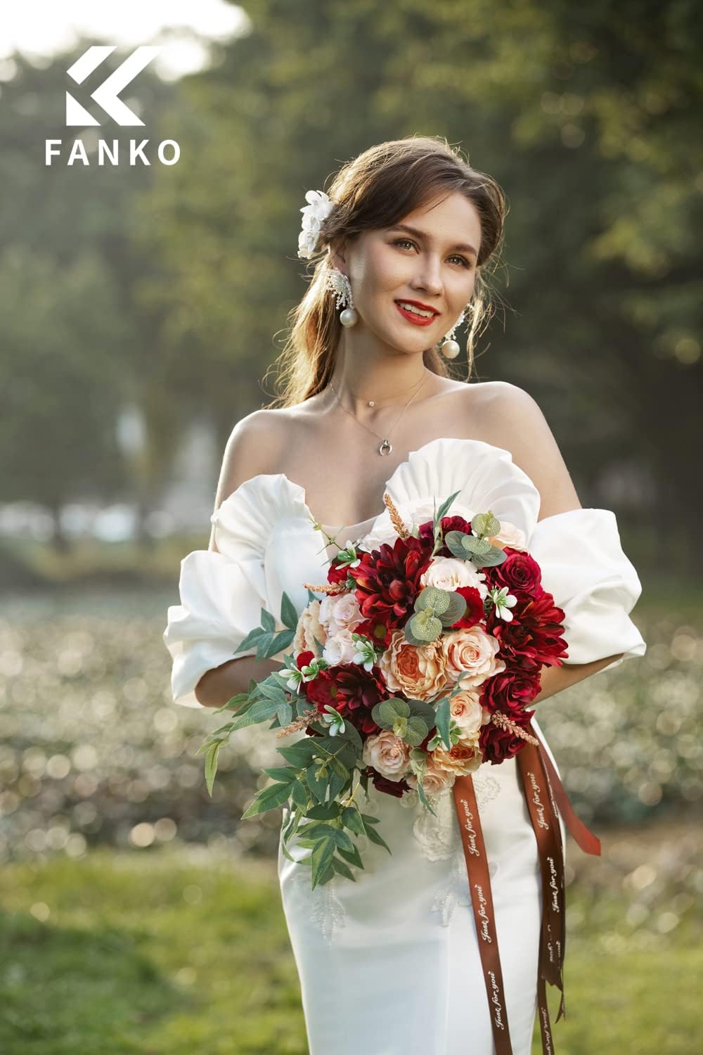 - 【27Pcs in Package】Our artificial flowers combo includes: Burgundy Semi-Cactus Dahlia x 3 (5"), Sunset Orange Waterlily Peony x 3 (3.5"), Burgundy Roses x 3 (3.5"), Cream Champagne High-Centered Roses x 3 (3.5"), Cream Vendela Roses x 3 (3.5"), Brick Red Flowers x 3 (2.5"), Plum Blossoms x 3 (2.5"), Mini Vanilla Flowers x 3, Eucalyptus Stems x 3, Nandina Plants x 3. [Notes: Ribbons are not included. Colors may vary slightly due to differences in monitor settings.]