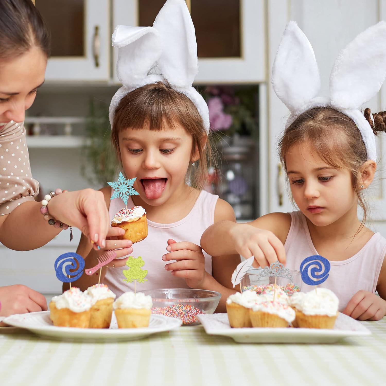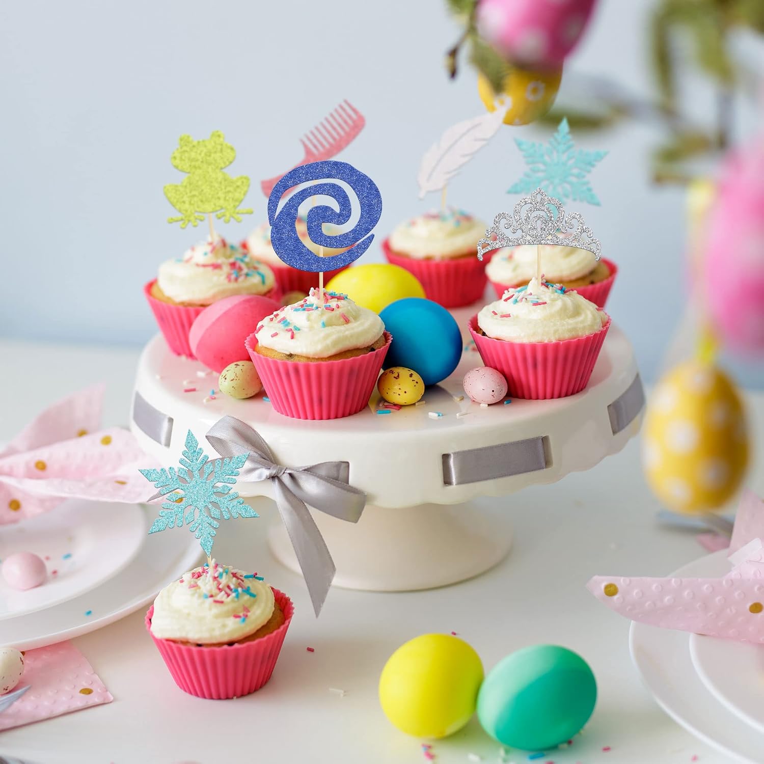- 🧁These glitter Princess Cupcake Toppers are so cute and good for princess crown theme party, baby shower theme party,kids birthday party cupcake decorations. They can make your cupcake more attractive and bring the fun to your party. You can also apply them for ice cream, fruits, cookies and other desserts.