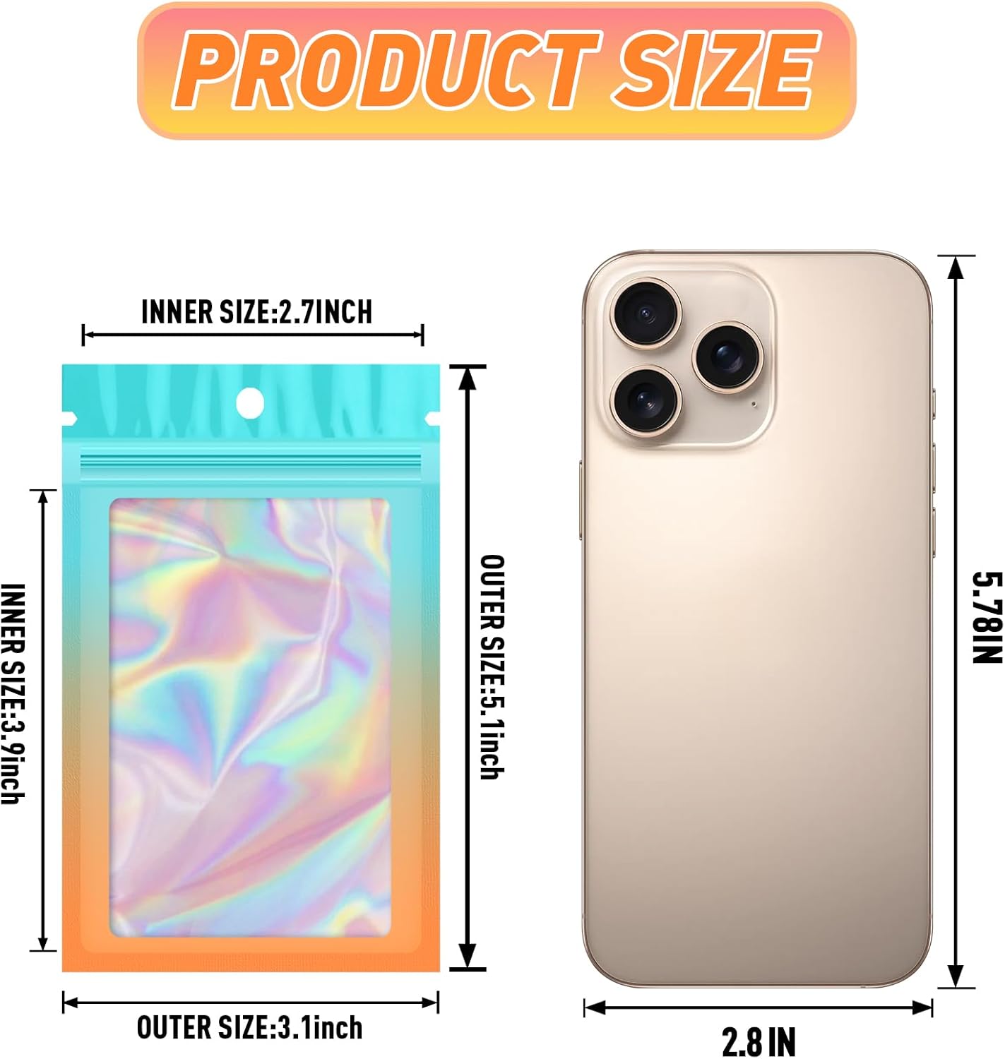 - 【New Holographic Bags】-New stylish holographic bags, a nice solid design makes your packing item stand out! Unique Gradient clear resealable bags than the boring old silver holographic type.