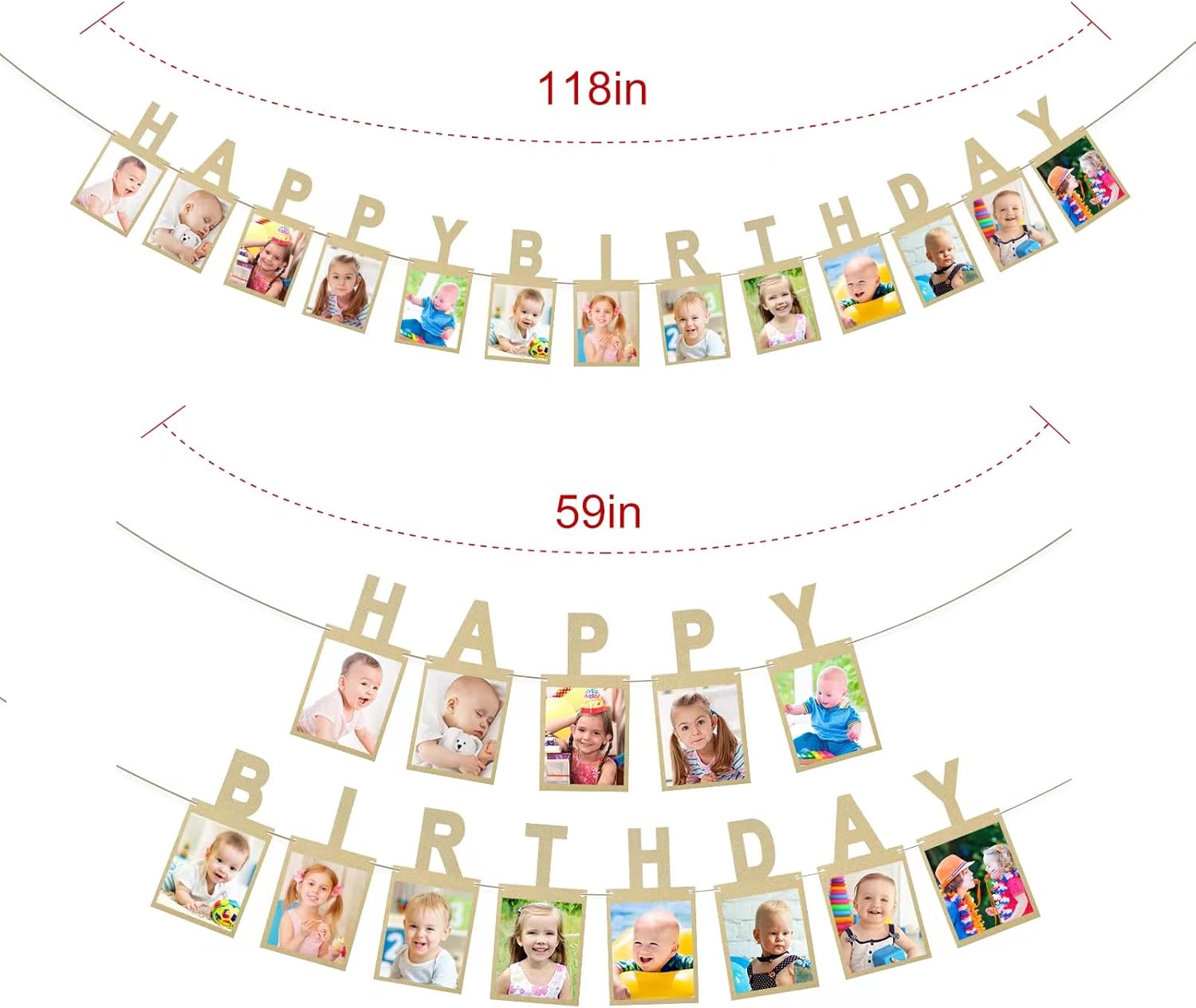 - PERFECT GIFT - A photo banner can be a great decoration for your or your child's birthday. It is a banner composed of happy birthday letters, you can use it to display at your birthday party or at your kid's birthday party, it can be a precious and meaningful memories
