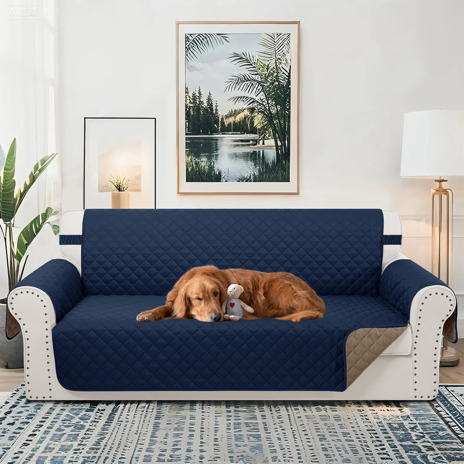 Reversible Oversized Sofa Covers Couch Cover Furniture Protector for Dogs Elastic Straps Water Resistant(XLSofa,Navy/Camel)