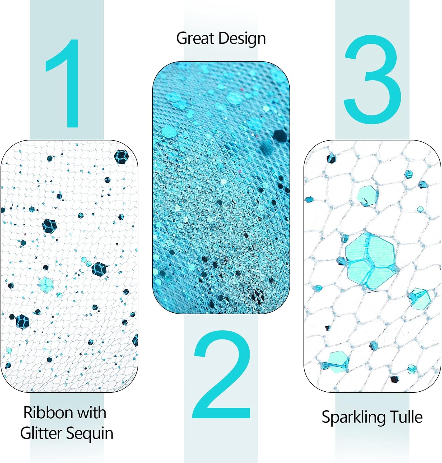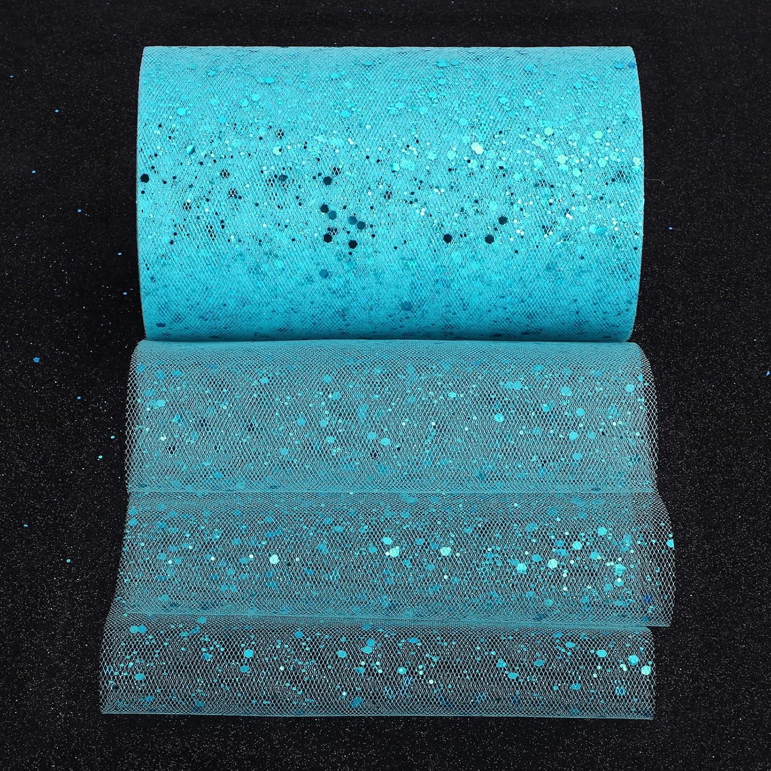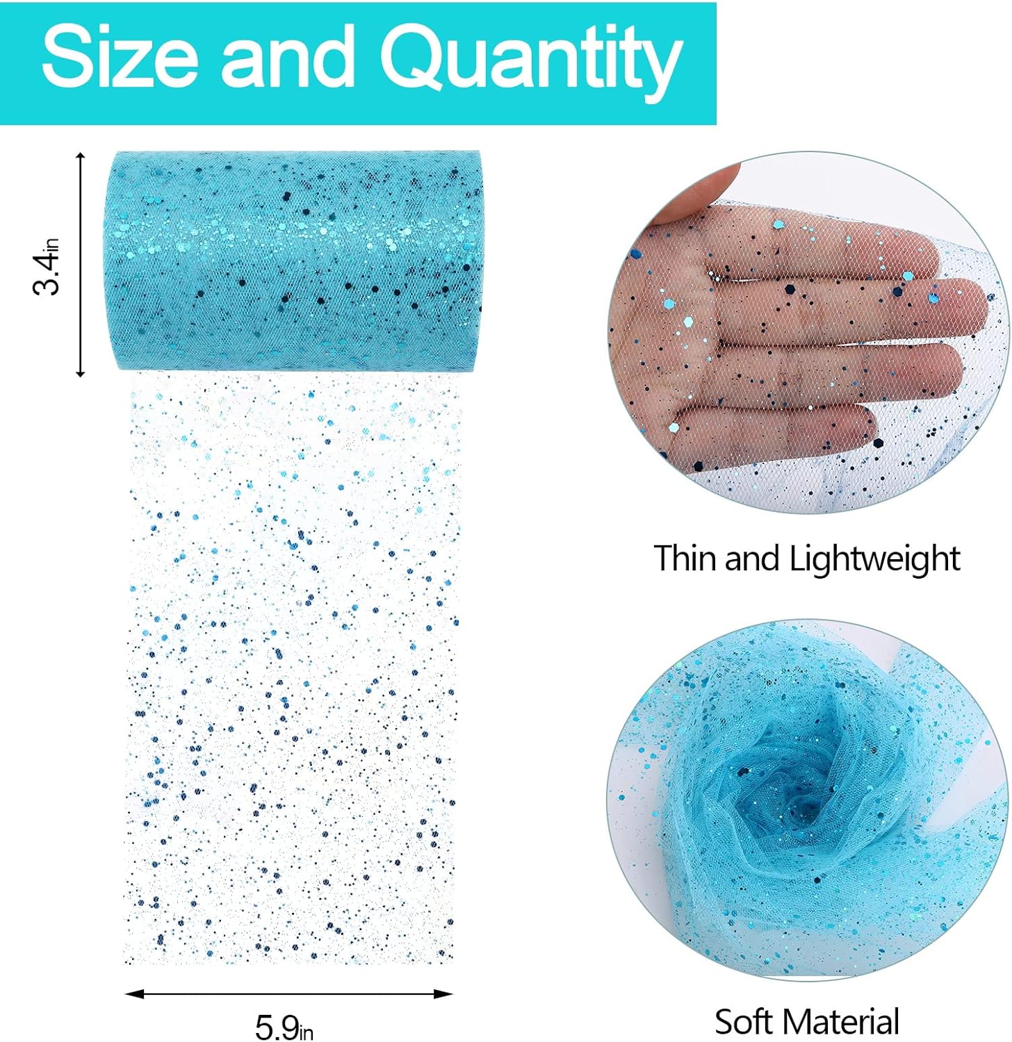 Glitter Tulle Rolls, 6” by 50 Yards (150FT) Sparkling Tulle Spool Ribbon Sequin Tulle Netting Fabric for Tutu Skirt Wedding Birthday Baby Shower (Light Blue)