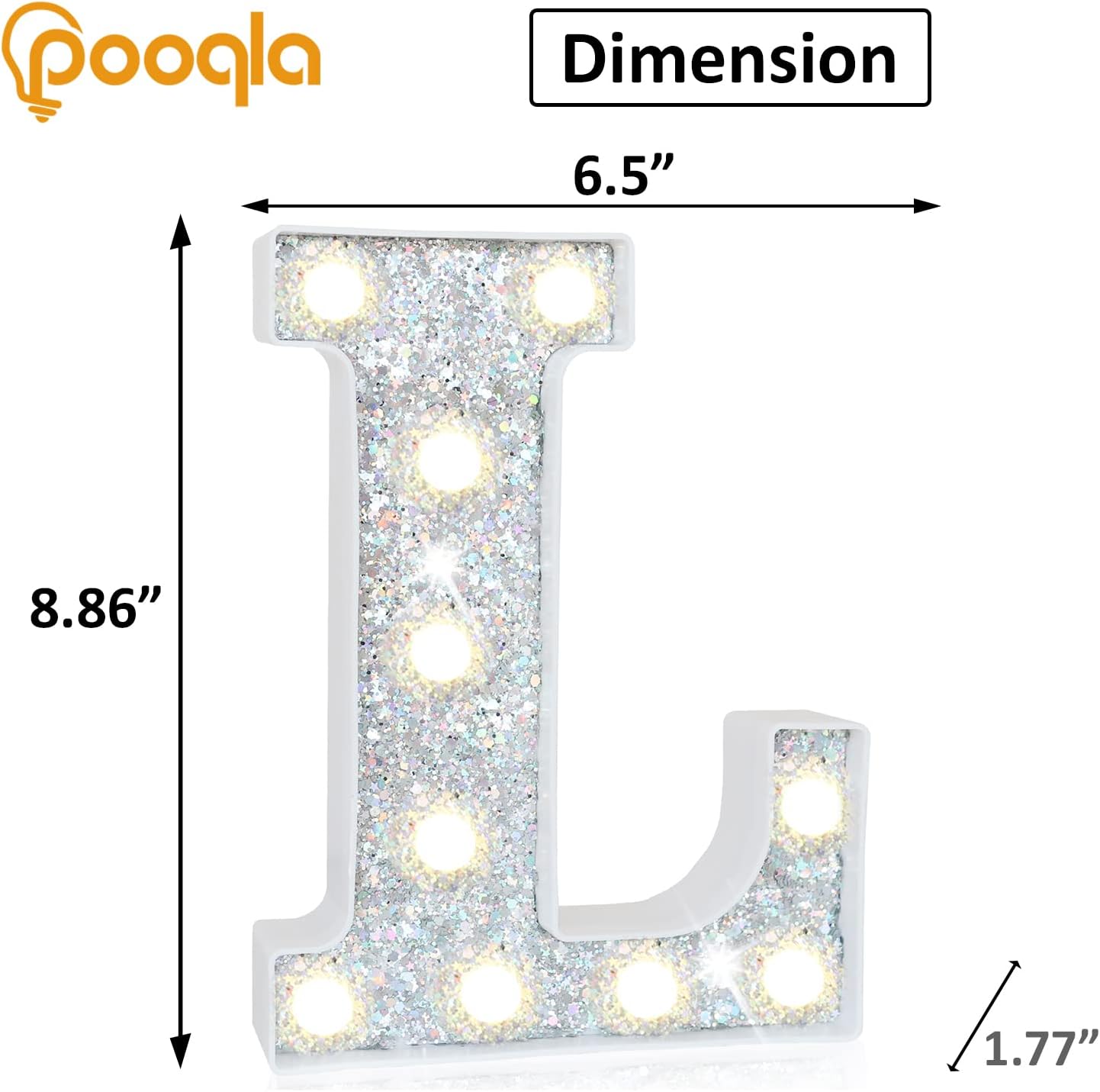 Pooqla Light Up Letters, LED Marquee Letters for Silver Birthday Decorations, Battery Powered Night Light Teenager Girl Room Decor, Gift for Girls Boys Wedding Bedroom Christmas Party Decor, Letter L