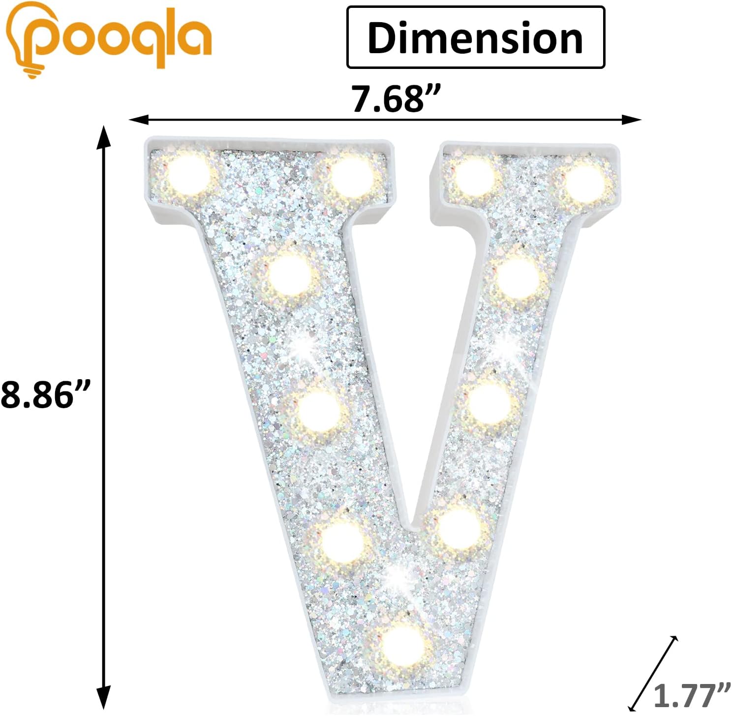 Pooqla Light Up Letters, LED Marquee Letters for Silver Birthday Decorations, Battery Powered Night Light Teenager Girl Room Decor, Gift for Girls Boys Wedding Bedroom Christmas Party Decor, Letter V