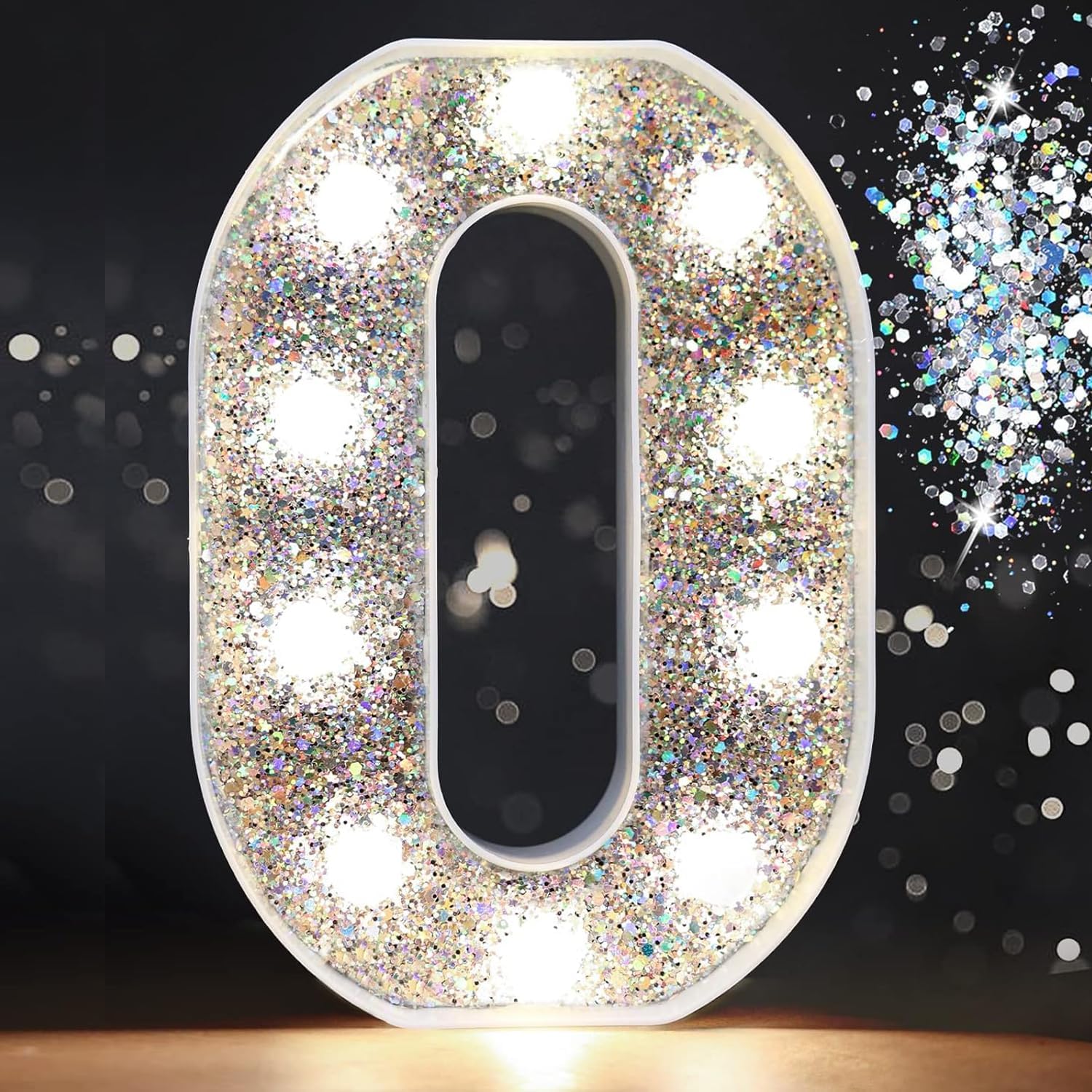 Pooqla Light Up Letters, LED Marquee Letters for Silver Birthday Decorations, Battery Powered Night Light Teenager Girl Room Decor, Gift for Girls Boys Wedding Bedroom Christmas Party Decor, Letter O