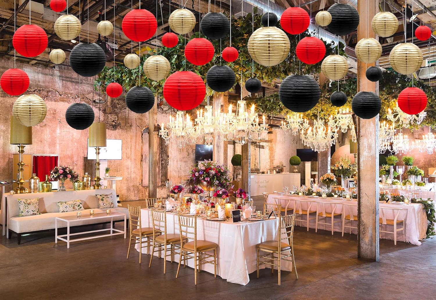 - RED BLACK GOLD THEME PARTY DECOR - Paper lanterns are suitable for gender reveal party, Mickey Mouse party, birthday party for adults, ladybug party, outdoor BBQ, easter, playground decoration, bridal shower, wedding, bachelorette party, engagement, retirement party, room decoration, garden decoration, children's DIY activities, graduation party and other theme parties. You can mix and match the lanterns as you like