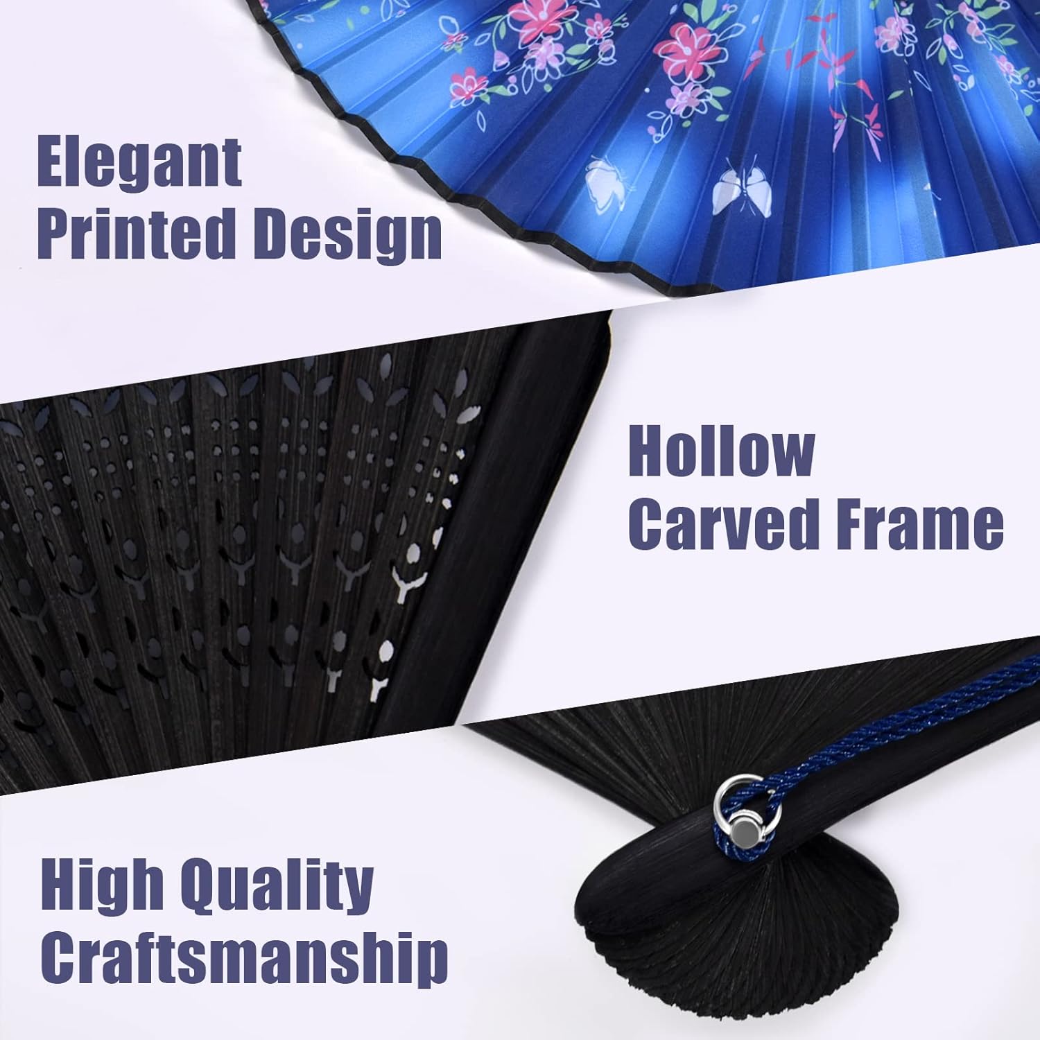 - 【High-Quality Material】- The handheld folding fan is made of high-quality silk and bamboo, a sturdy and durable product to give you a smooth opening and folding experience. Premium hollow bamboo frame design, which is elegant and increases the more classical charm.