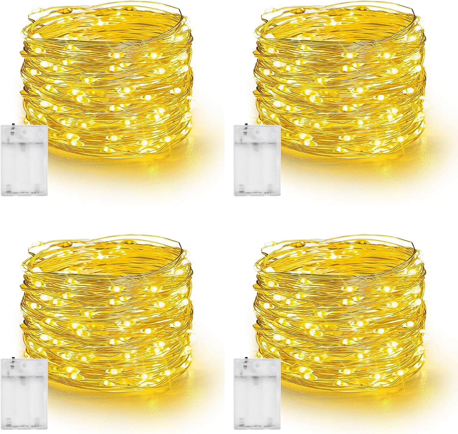 Dazzle Bright Fairy Lights Battery Operated, 4 Pack Total 80FT 240LED Silver Wire Waterproof String Lights, Christmas Decorations for Indoor Outdoor Bedroom Yard Party Decor, Warm White