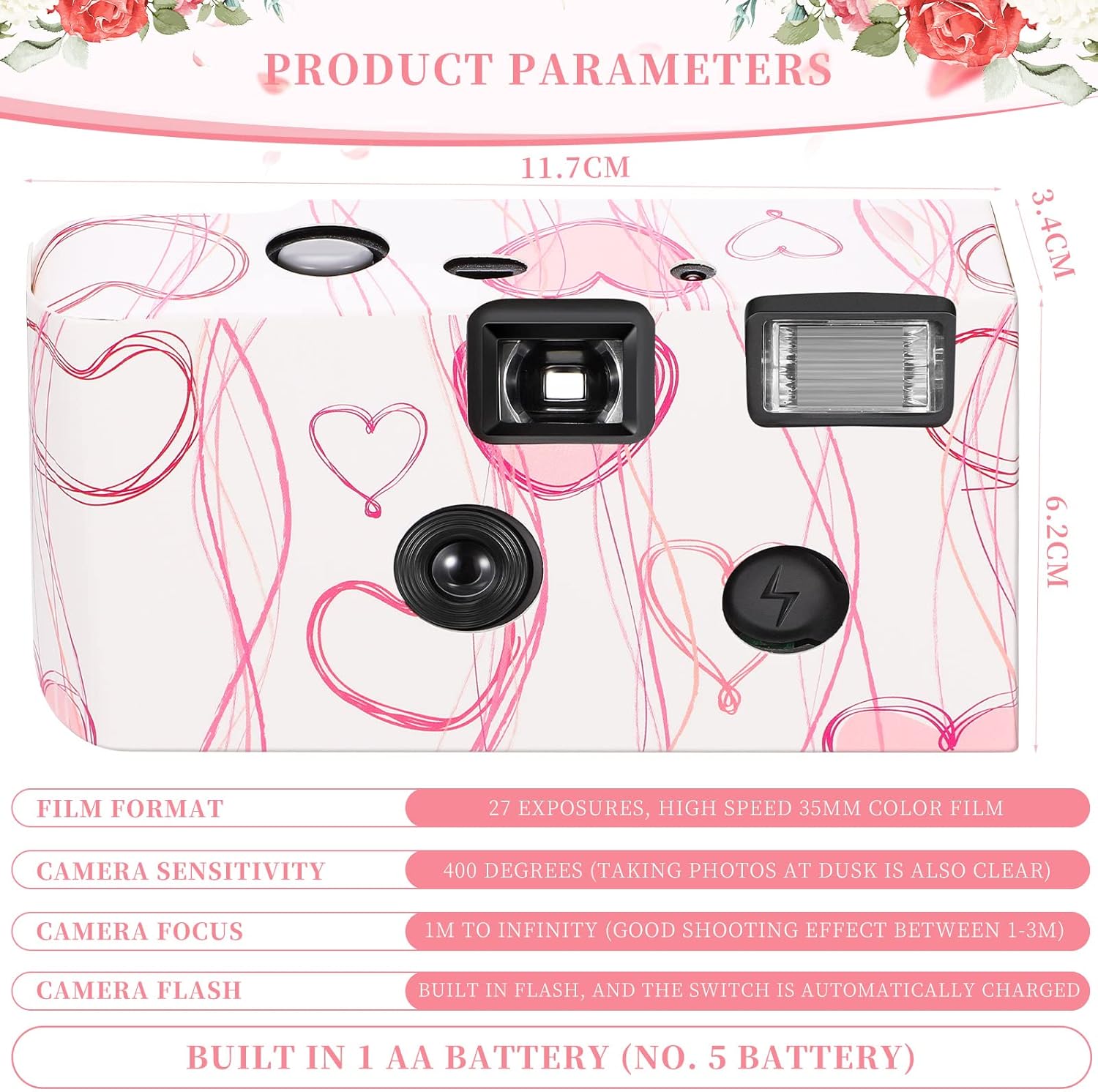 - Love Heart Design: the disposable camera design with adorable love heart pattern, romantic and elegant, suitable for wedding, bridal shower, anniversary, honeymoon, events, travel, concert, camping and so on, it can help you capture a lot of important moments