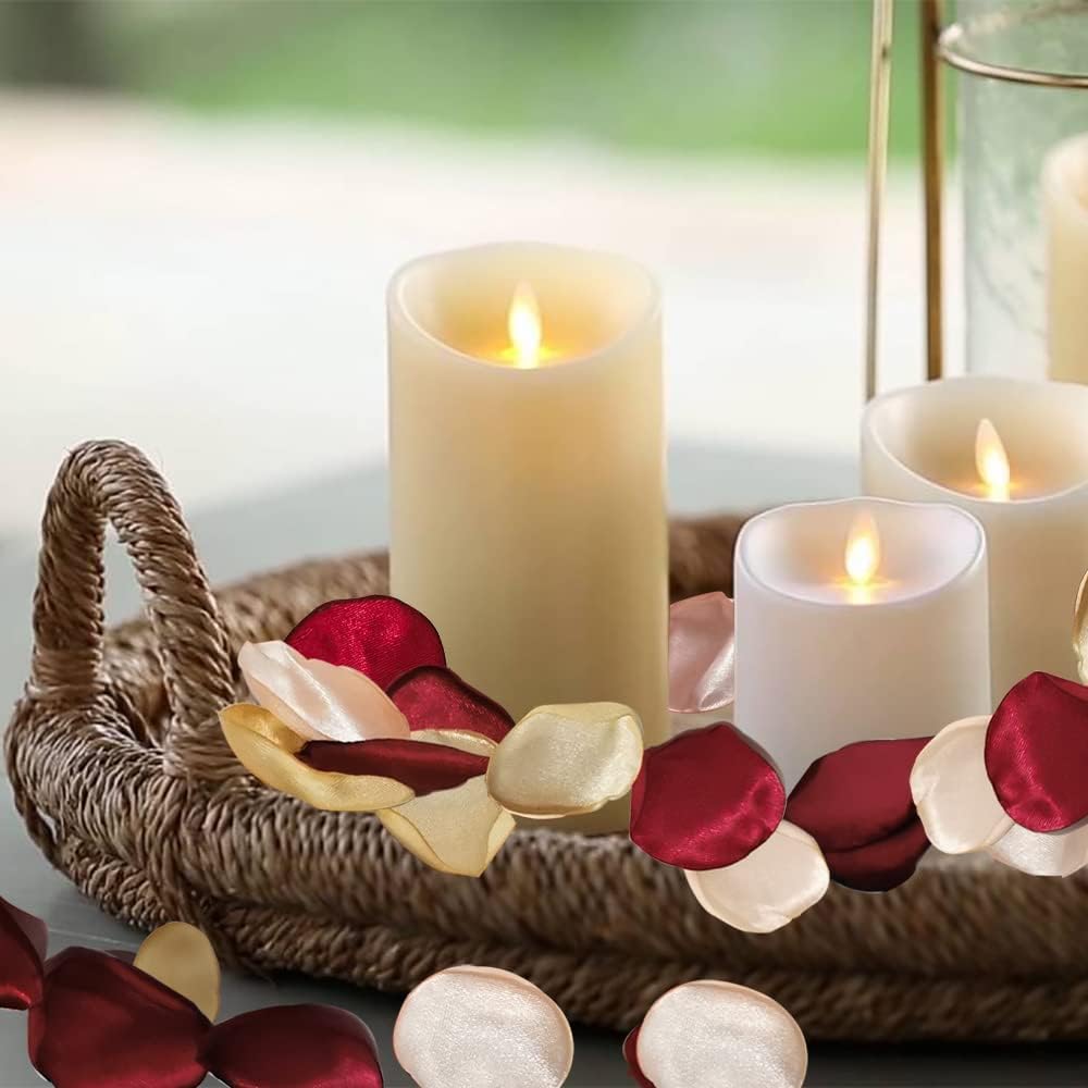 Silk Rose Petals 200PCS Flower Girl Petals Flower Petals for Wedding Cake Table Centerpieces Romantic Night Scatter Petals (Burgundy Gold Pink)