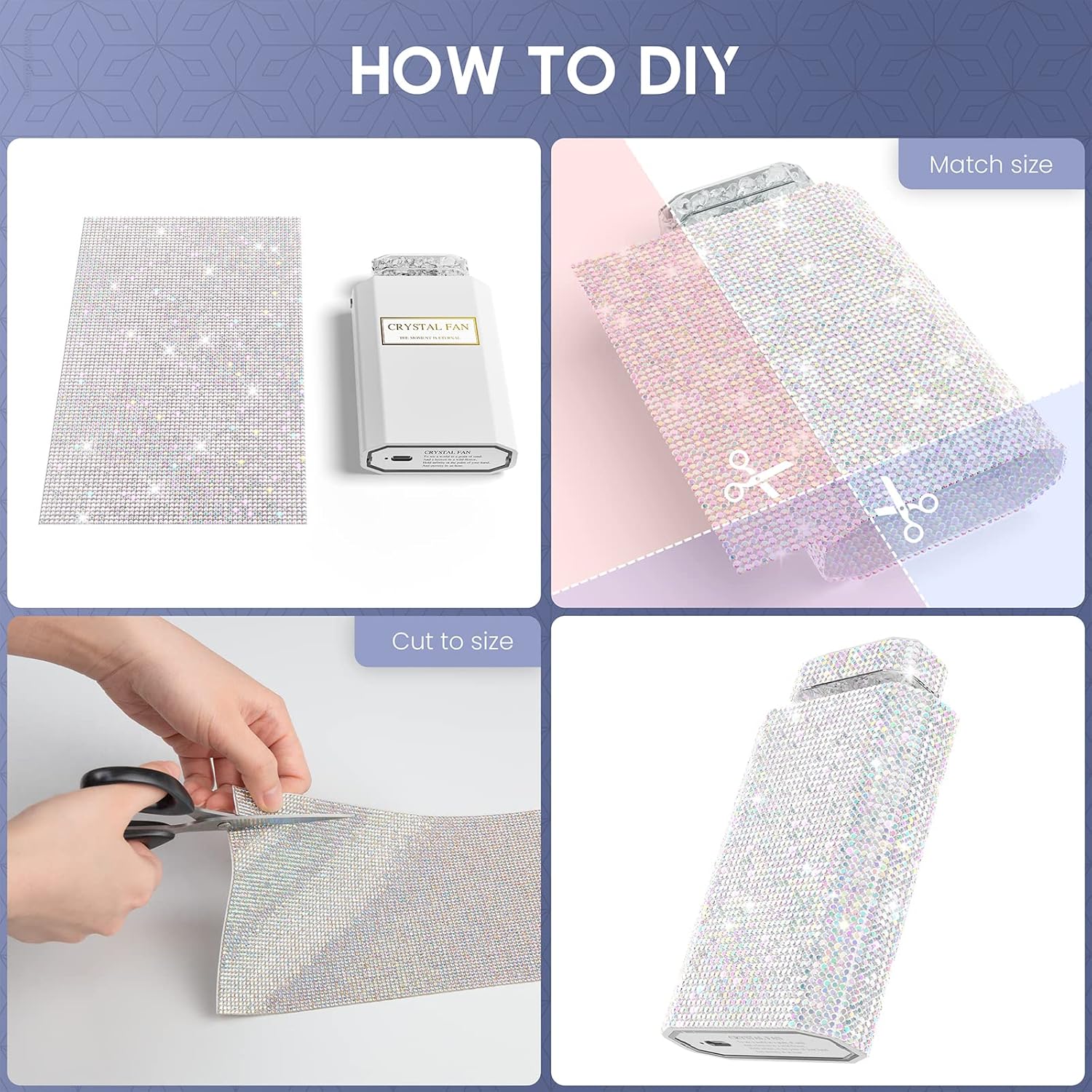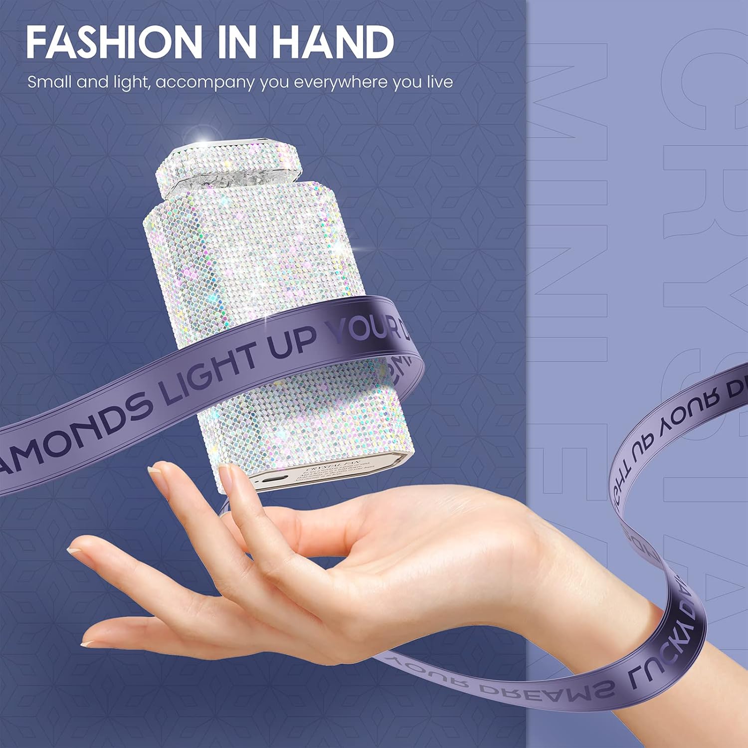 Lady Rechargeable Personal Fan with 3 Speeds, Quiet Portable Mini Cooling Desk Electric Fan - White Rhinestones
