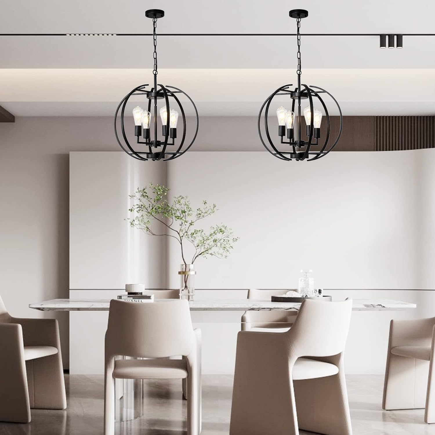 Large Lantern Globe Black Chandelier Lighting, Farmhouse Chandelier Adjustable Pendant Lighting Fixtures Hanging Ceiling 4 Light for Kitchen, Dining Room, Living Room, Hallway