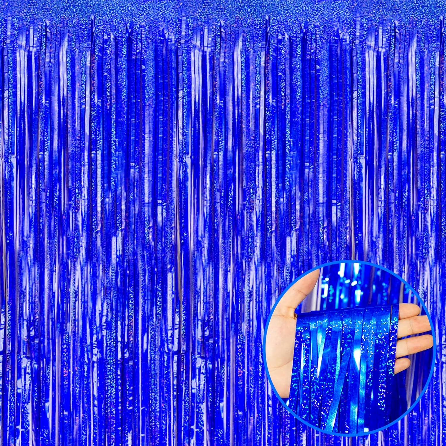 4 Pack Blue Tinsel Foil Fringe Curtain Backdrop, 3.28Ft x 8.2Ft Metallic Streamers for Photo Booth Props Wedding Bridal Shower Bachelorette Birthday Halloween Christmas Party Decoration