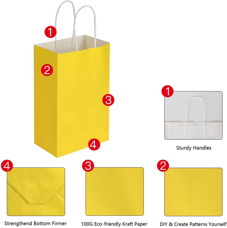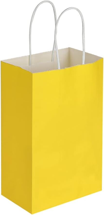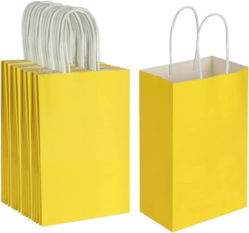 - Included Components : 50 Packs of 5.25x3.25x8.25 Inch Small Yellow Kraft Paper Bags with Handles