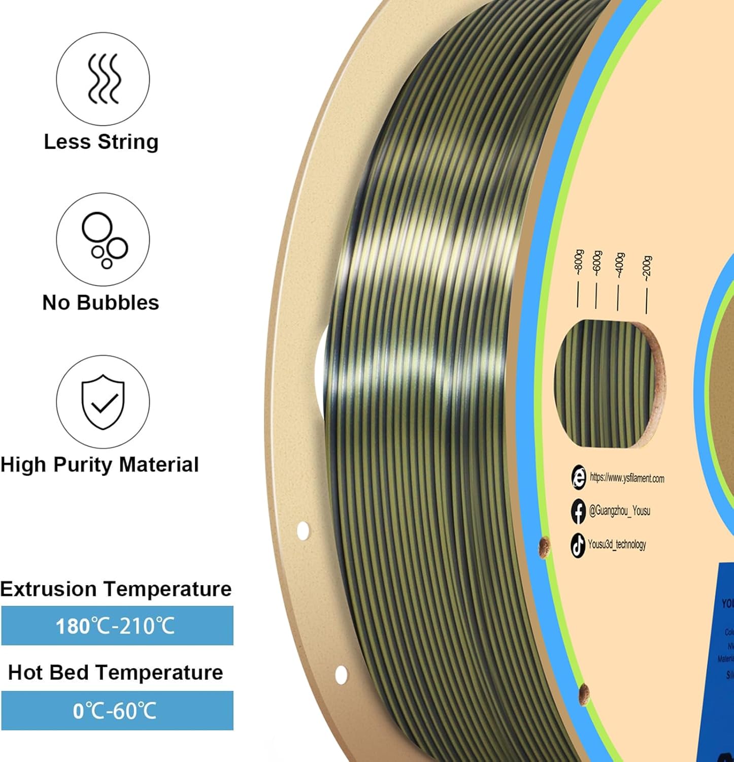 YOUSU Silk Dual Color PLA Filament, Coextrusion Filament, Multicolor 3D Printer Filament 1kg, Dichromatic Filament 1.75mm (± 0.03 mm) Compatible with Most of 3D Printer, Silk Silver Bronze