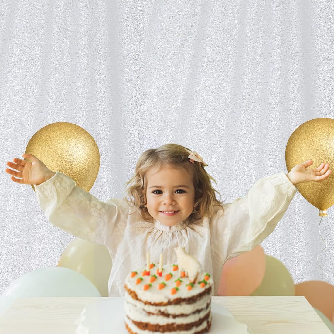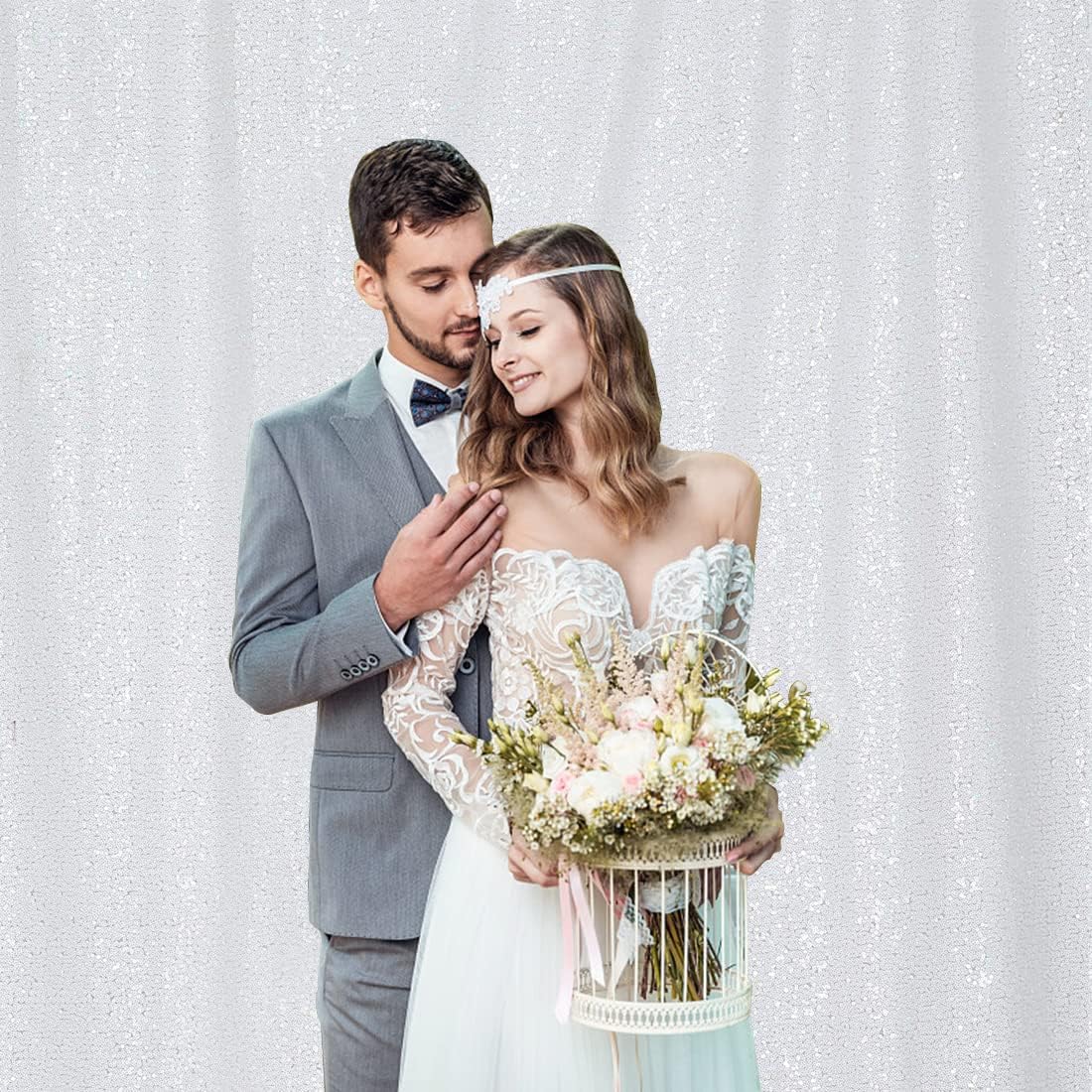 - 【Sparkly White Backdrop 】Mesh fabric covered with dense round sequins. Keep the sequin backdrop in the lamplight, it sure will give you a big surprise.