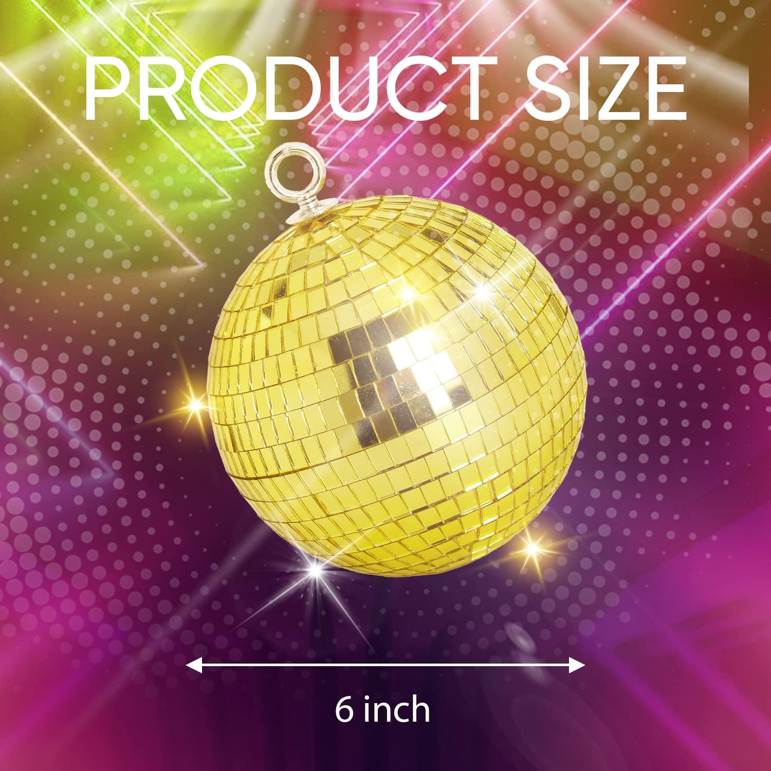 - Sparkly Reflective Design: The 6 inch disco ball with bright gold tiles around, each small glass spacing is consistent and color is same, making the light more even. When light shines on mirrorball, each facet reflects light back into the air, casting it into dozens of small beams that stream out in all directions, and will add lots of light and reflection across walls and ceiling.