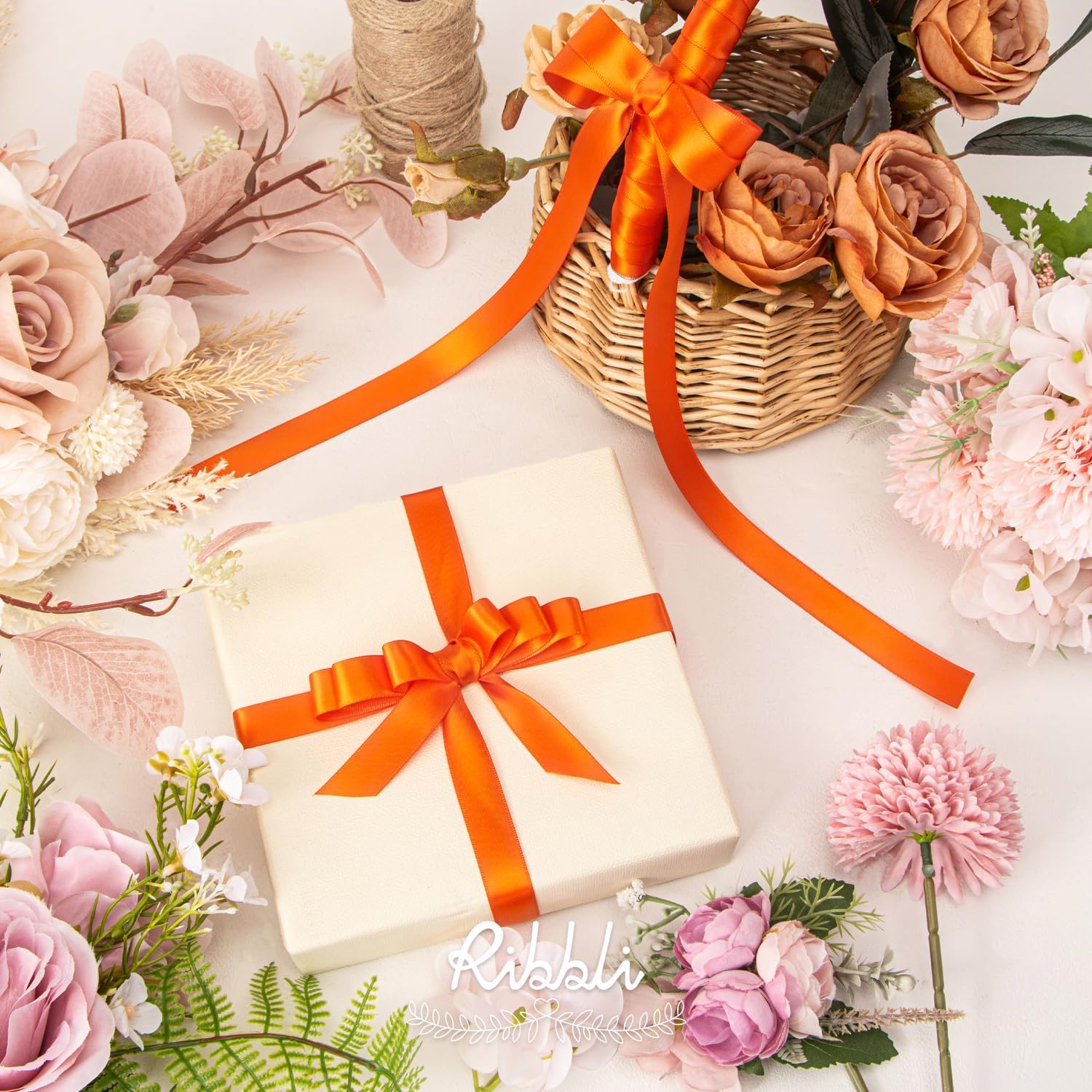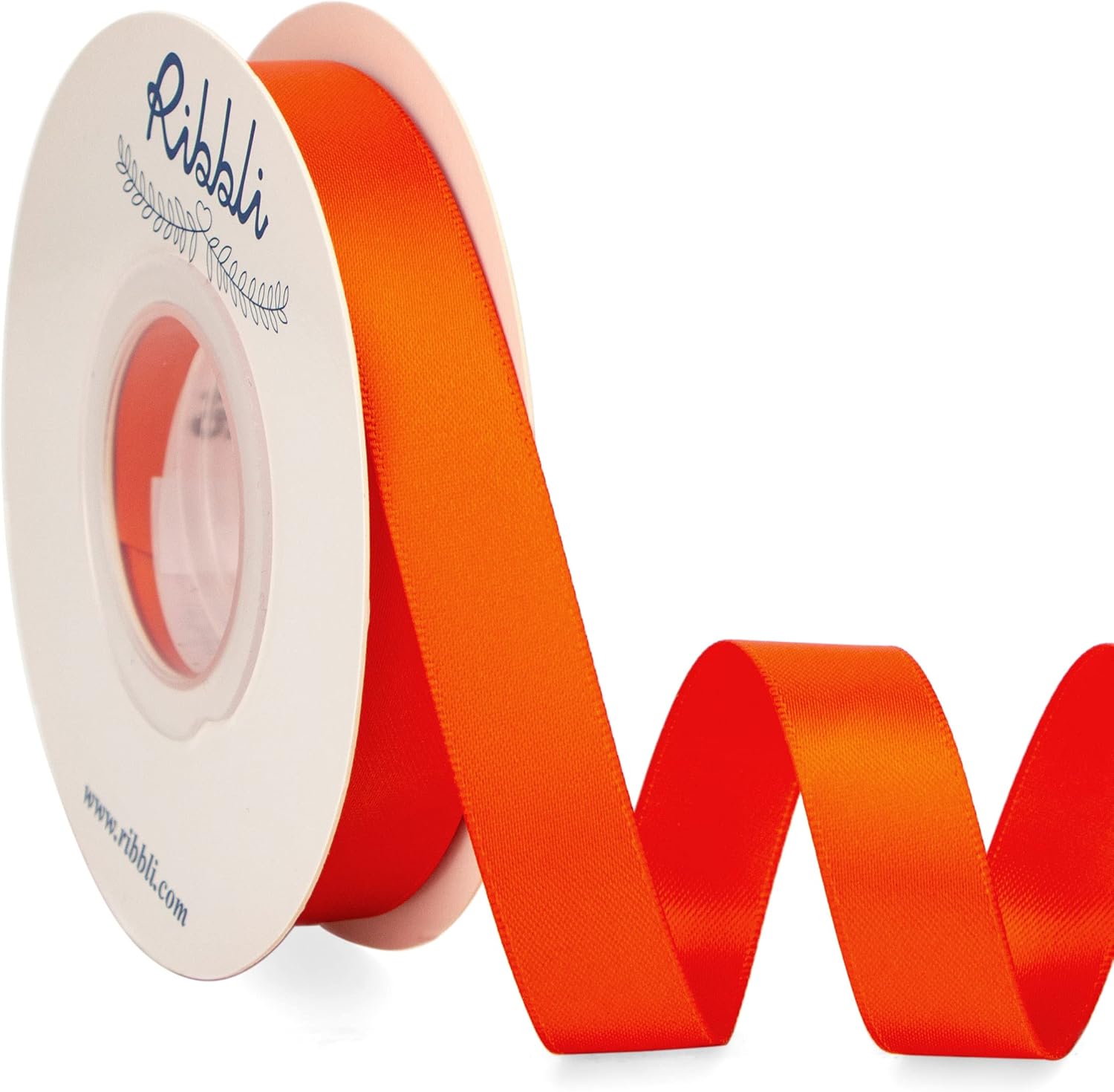 Ribbli Torrid Orange Satin Ribbon 5/8 inch x Continuous 25 Yards,Double Faced Satin Use for Craft, Gift Wrapping, Christmas Ornaments, Hair Bows, Bouquet Bows