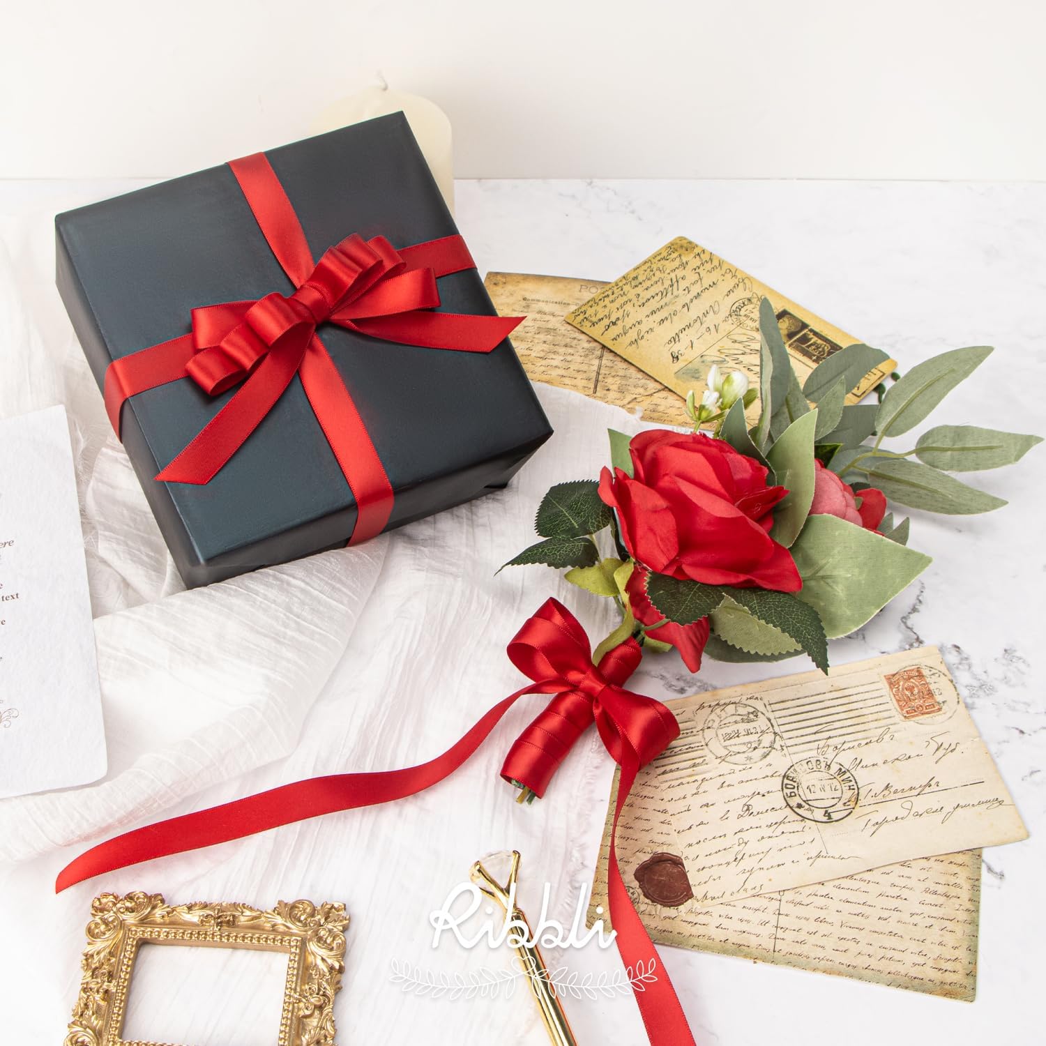 Ribbli Red Satin Ribbon 5/8 inch x Continuous 25 Yards,Double Faced Satin Use for Craft, Gift Wrapping, Christmas Ornaments, Hair Bows, Bouquet Bows