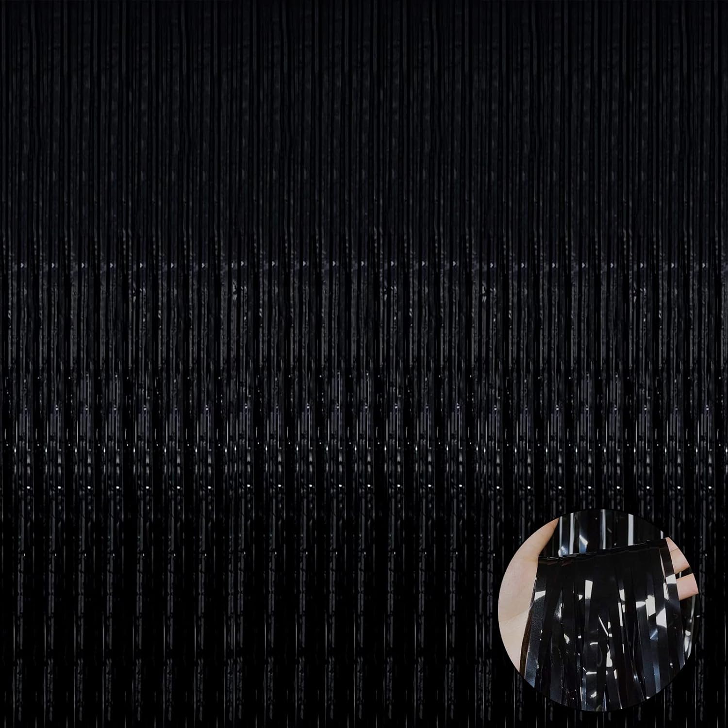 4 Pack Black Foil Fringe Curtain Backdrop, 3.28Ftx9.84Ft Metallic Tinsel Foil Fringe Streamers Curtains for Party, Photo Booth Props, Birthday, 2022 Graduation Decoration Supplies
